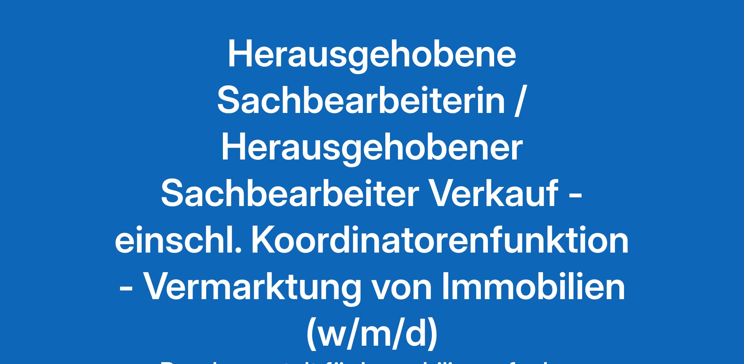 Herausgehobene Sachbearbeiterin / Herausgehobenen Sachbearbeiter Verkauf - einschl. Koordinatorenfunktion - Vermarktung von Immobilien (w/m/d)