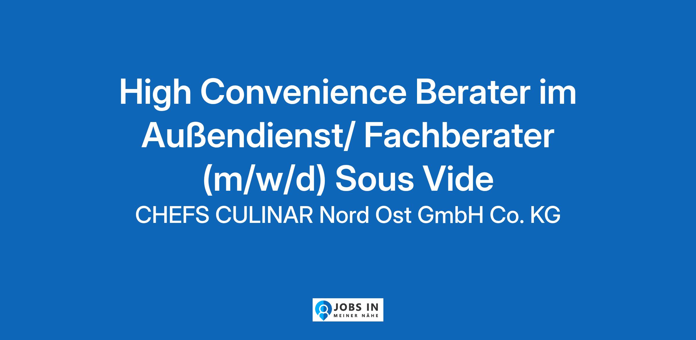 Wir wachsen! Wachse mit uns! Als bundesweit führender Zustellgroßhändler für Großverbraucher in der Gastronomie und Hotellerie sowie von Krankenhäusern, Senioreneinrichtungen und Betriebskantinen entwickeln wir uns stetig weiter. Daher entsteht in Ludwigsfelde aktuell unsere neue Niederlassung ... CHEFS CULINAR Nord-Ost, Ludwigsfelde, High Convenience Berater im Außendienst/ Fachberater (m/w/d) Sous Vide Effiziente Lösungen;Küchenarbeit;Produktvorführung;Neue Projekte;Gastronomie;Produktkenntnisse;Außendienst;Vertrauen aufbauen;Kundenorientiert;Kommunikation;Reisebereitschaft;Verkostung;Einführungen;Innovation;Beratung Original Stellenanzeige auf StepStone.de – Jetzt Jobagent bei StepStone einrichten und Traumjob finden! https://bit.ly/2KOagYD Mehr Informationen zu Arbeitgebern, Gehaltsdaten und Karrieretipps finden Sie auf StepStone.de
