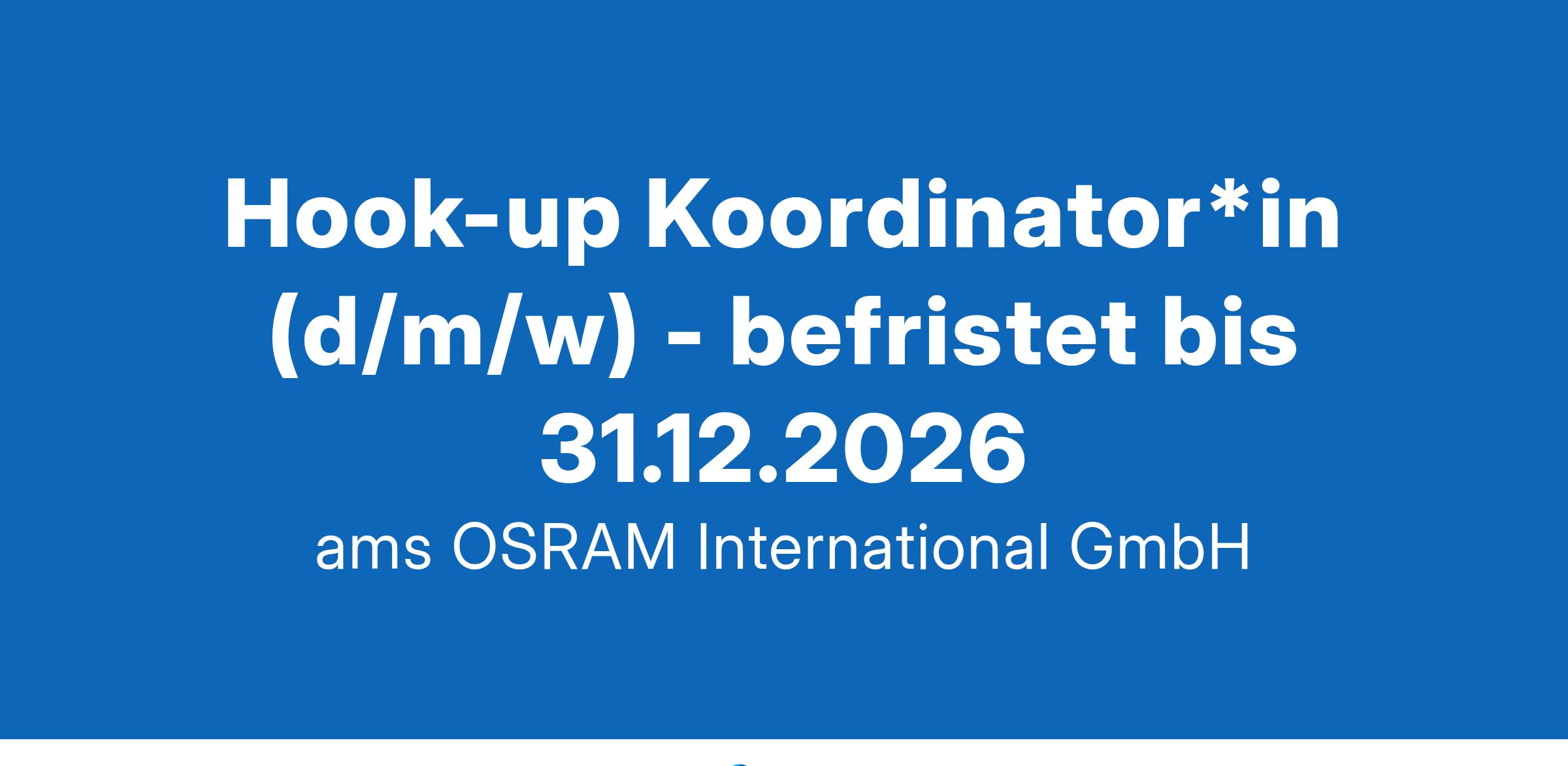 Sense the power of lightams OSRAM ist ein weltweit führender Anbieter innovativer Licht- und Sensorlösungen. "Sense the power of light" - unser Erfolg basiert auf unserem tiefen Verständnis für das Potenzial von Licht. Wir verbinden Licht mit Intelligenz und ermöglichen so unseren Kunden, neuartige Anwendungen zu entwickeln. Unsere rund 20.000 Mitarbeiter weltweit arbeiten an innovativen Lösungen entlang der gesellschaftlichen Megatrends Digitalisierung, Smart Living, Energieeffizienz und Nachhaltigkeit. Was auch immer deine Rolle ist, du bist Teil eines talentierten Teams, das Spaß an der Erforschung und Entwicklung neuer Technologien hat.Hook-up Koordinator*in (d/m/w) - befristet bis 31.12.2026Standort: Regensburg