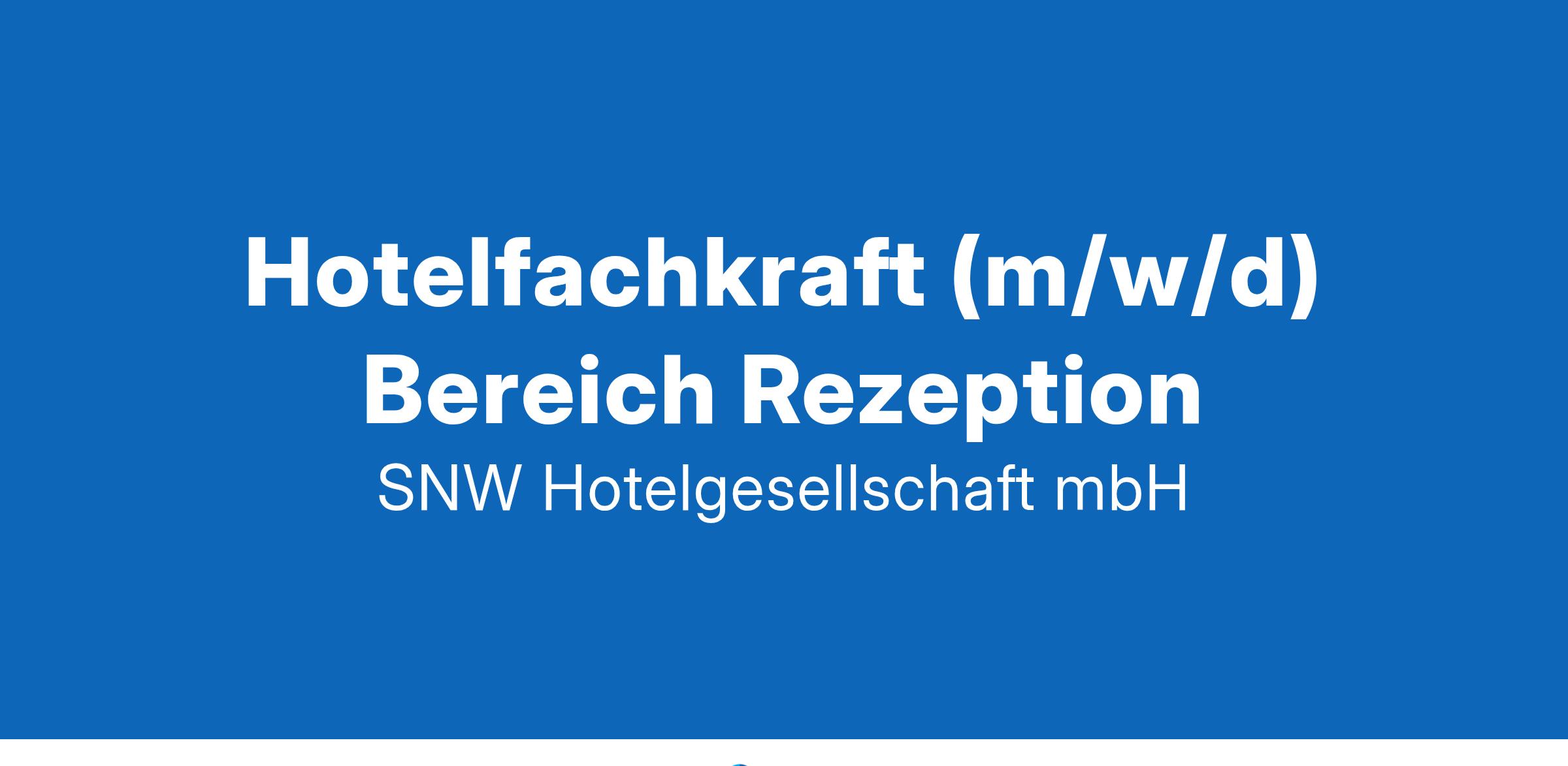 Hotelfachkraft (m/w/d) Bereich Rezeption Wir suchen Dich! Ausgebildete Hotelfachkraft (m/w/d) Bereich Rezeption in Voll- oder Teilzeit Was du mitbringen solltest: Spaß am Umgang mit Menschen Gute Deutschkenntnisse in Wort und Schrift, Englischkenntnisse ideal Abgeschlossene Ausbildung zur Hotelfachkraft und idealerweise Erfahrung im Front Office Bereich Angenehmes und höfliches Auftreten Engagement, Verantwortungsbewusstsein, Teamfähigkeit Was wir dir bieten: Verantwortungsvolle und abwechslungsreiche Aufgaben Verbindliche Urlaubsplanung Eine angenehme Arbeitsatmosphäre Arbeitsplatzsicherheit Mitarbeiterkonditionen in ausgewählten Hotels Individuelle Schulungen und Weiterbildungen Betriebliche Altersvorsorge E-Bike Dienstrad Leasing Faire, tarifliche und pünktliche Entlohnung (0471) 93200 bewerbung@snw-hotels.de Am Schaufenster 7, 27572 Bremerhaven