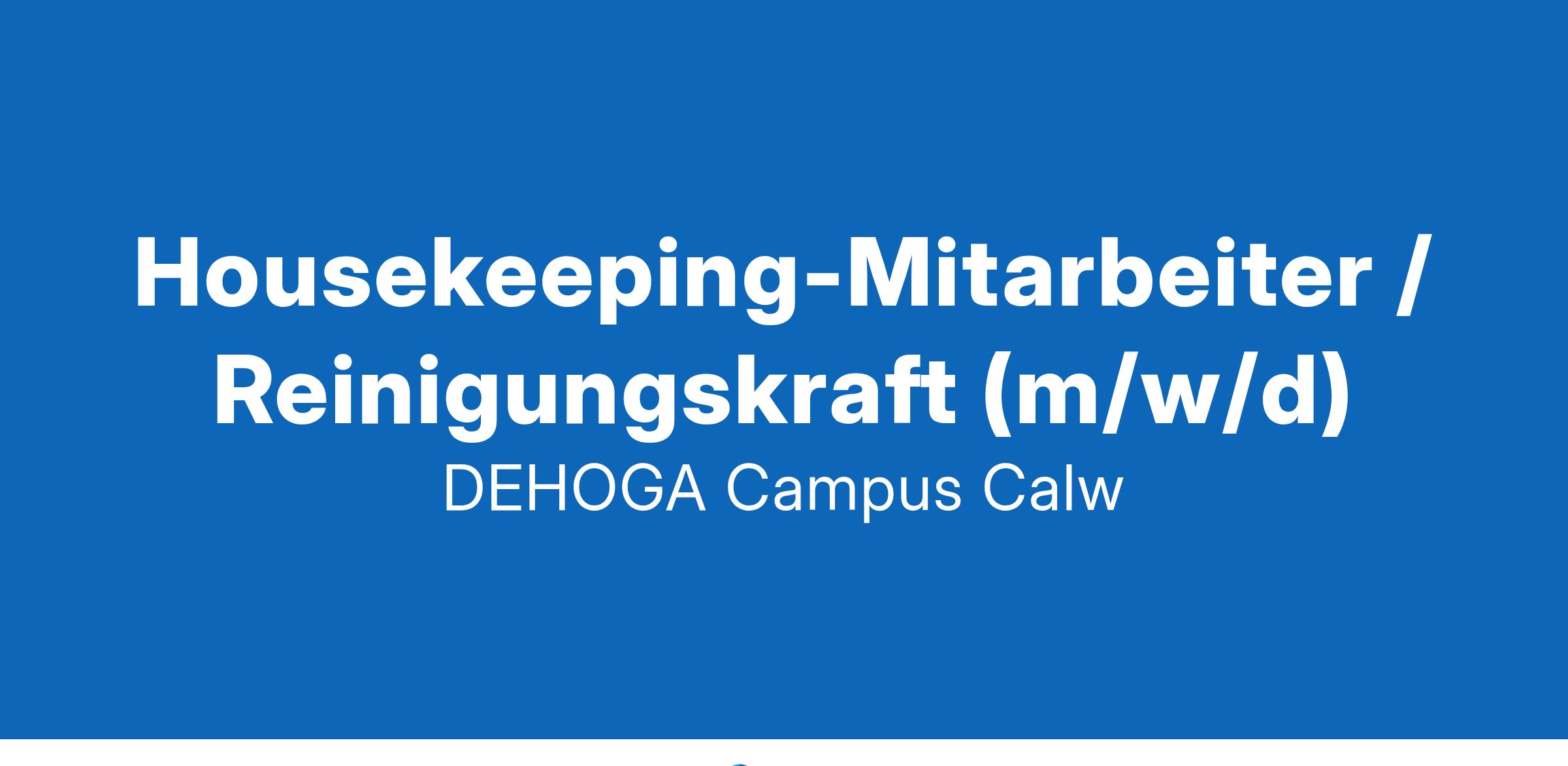 In Calw haben wir im September 2022 den neuen DEHOGA Campus eröffnet, der eine moderne Lern- und Wohnwelt in Ergänzung zur dortigen Landesberufsschule schafft. Neben der Unterbringung und Verpflegung für bis zu 320 Schüler:innen bieten wir mit einem regional und nachhaltig ausgerichteten Casino, einem Bistro und attraktiven, vielseitigen Freizeitangeboten ein innovatives und harmonisches Umfeld für die Auszubildenden.Für das Team des DEHOGA Campus suchen wir eine/nHousekeeping-Mitarbeiter / Reinigungskraft (m/w/d)Festanstellung · Teilzeit · CalwIHRE AUFGABENSie reinigen und pflegen die zugewiesenen Räumlichkeiten (z. B. Gästezimmer und öffentliche Bereiche)Sie hantieren mit Reinigungsmitteln, Materialien und GerätschaftenSie halten die Betriebsanweisungen sowie Anwendungsvorschriften genutzter Pflegemittel einSie arbeiten eng mit dem gesamten Housekeeping-Team zusammenIHR PROFILZUVERLÄSSIG: Sie haben ein hohes Maß an Qualitäts- und HygienebewusstseinTEAMORIENTIERT: Sie haben einen hohen Teamgeist und identifizieren sich mit der gastgewerblichen BrancheFLEXIBEL: Sie sind zeitlich flexibel während der BlockschulzeitenWIR BIETEN IHNENWerden Sie Teil unseres DEHOGA-Teams und wirken Sie aktiv an unserer modernen, digitalen und innovativen Lern- und Wohnwelt für unsere Campusgäste mit. Freuen Sie sich auf eine vielseitige Aufgabe mit einem hohen Maß an Gestaltungsspielraum in einem modernen und leistungsstarken Branchenverband mit Standort in Calw. Eine offene, kommunikative Unternehmenskultur sowie die Arbeit in kleinen Teams mit kurzen Entscheidungswegen und flachen Hierarchien zeichnen uns aus. Zudem bieten wir Ihnen:Weiterbildungsmöglichkeiten, Team-Events und MitarbeiterrabatteEin modernes Arbeitsumfeld und einen neu gestalteten modernen CampusEine attraktive Bezahlung und diverse Zusatzleistungen30 Tage Urlaub, zusätzliche freie Tage an Weihnachten und Silvester sowie in BlockschulferienFahrtkostenerstattung oder JobticketHABEN WIR IHR INTERESSE GEWECKT?Dann freuen wir uns auf die Zusendung Ihrer aussagekräftigen Bewerbung mit Angabe Ihres frühestmöglichen Starttermins, gerne über unser Jobportal.Jetzt bewerbenFür offene Fragen vorab steht Ihnen unsere Leiterin der Abteilung Human Resources Lisa Dannheimer gerne per E-Mail an l.dannheimer@dehogabw.de zur Verfügung.ÜBER DEN DEHOGA BADEN-WÜRTTEMBERGAls moderne Arbeitgeberorganisation setzt sich der Hotel- und Gaststättenverband DEHOGA Baden-Württemberg in Politik und Öffentlichkeit für die Anliegen von Hotellerie und Gastronomie im Land ein. Dem DEHOGA gehören landesweit rund 12.000 Mitgliedsbetriebe an. Alle gastgewerblichen Betriebsarten sind hierbei vertreten, vom großen Hotel bis zur kleinen Gastwirtschaft, vom Gourmet-Restaurant bis zu Bar. Der DEHOGA kämpft für fairen Wettbewerb, gegen Bürokratie und unnötig hohe Kostenbelastungen für die Betriebe des Gastgewerbes. Zudem setzt er sich für das Ansehen der Branche ein und wirbt für die Ausbildung in Gastronomie und Hotellerie. Als Vertreter der Arbeitgeber:innen im Gastgewerbe handelt der DEHOGA Tarifverträge aus. Mit seinen Servicegesellschaften bietet der DEHOGA Baden-Württemberg umfangreiche Dienstleistungen für die Betriebe der Branche an.DEHOGA Campus Calw