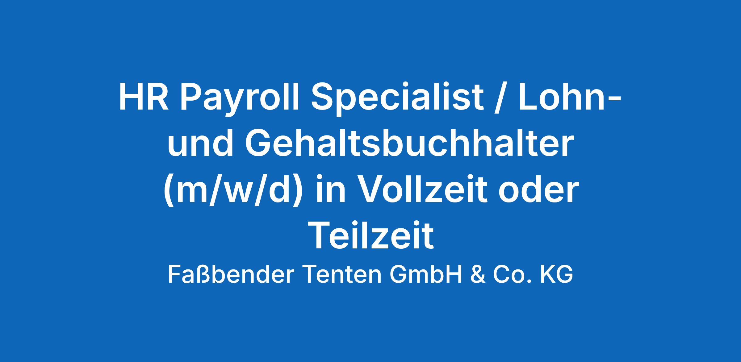 HR Payroll Specialist / Lohn- und Gehaltsbuchhalter (m/w/d) in Vollzeit oder Teilzeit