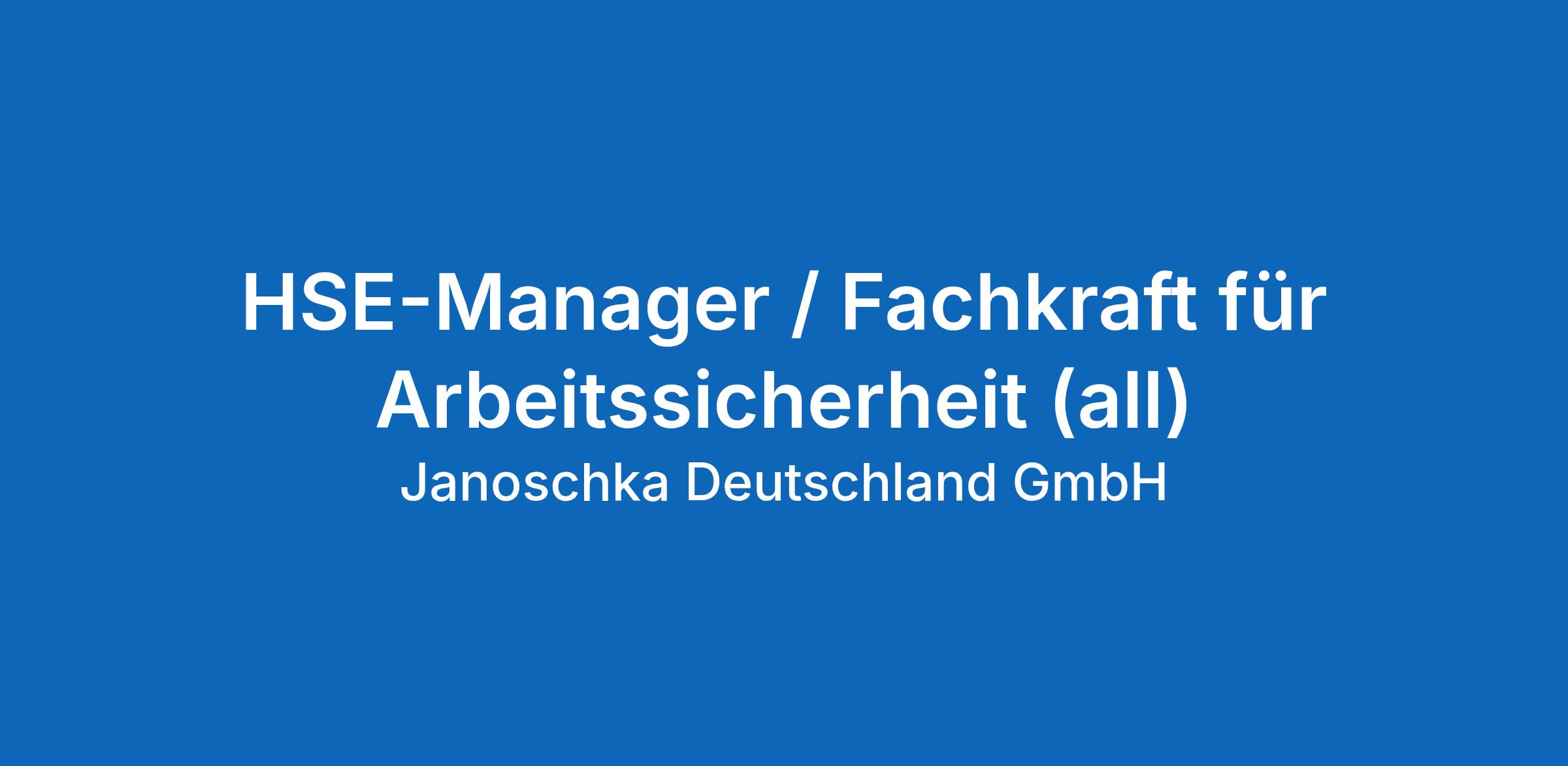 HSE-Manager / Fachkraft für Arbeitssicherheit (all)