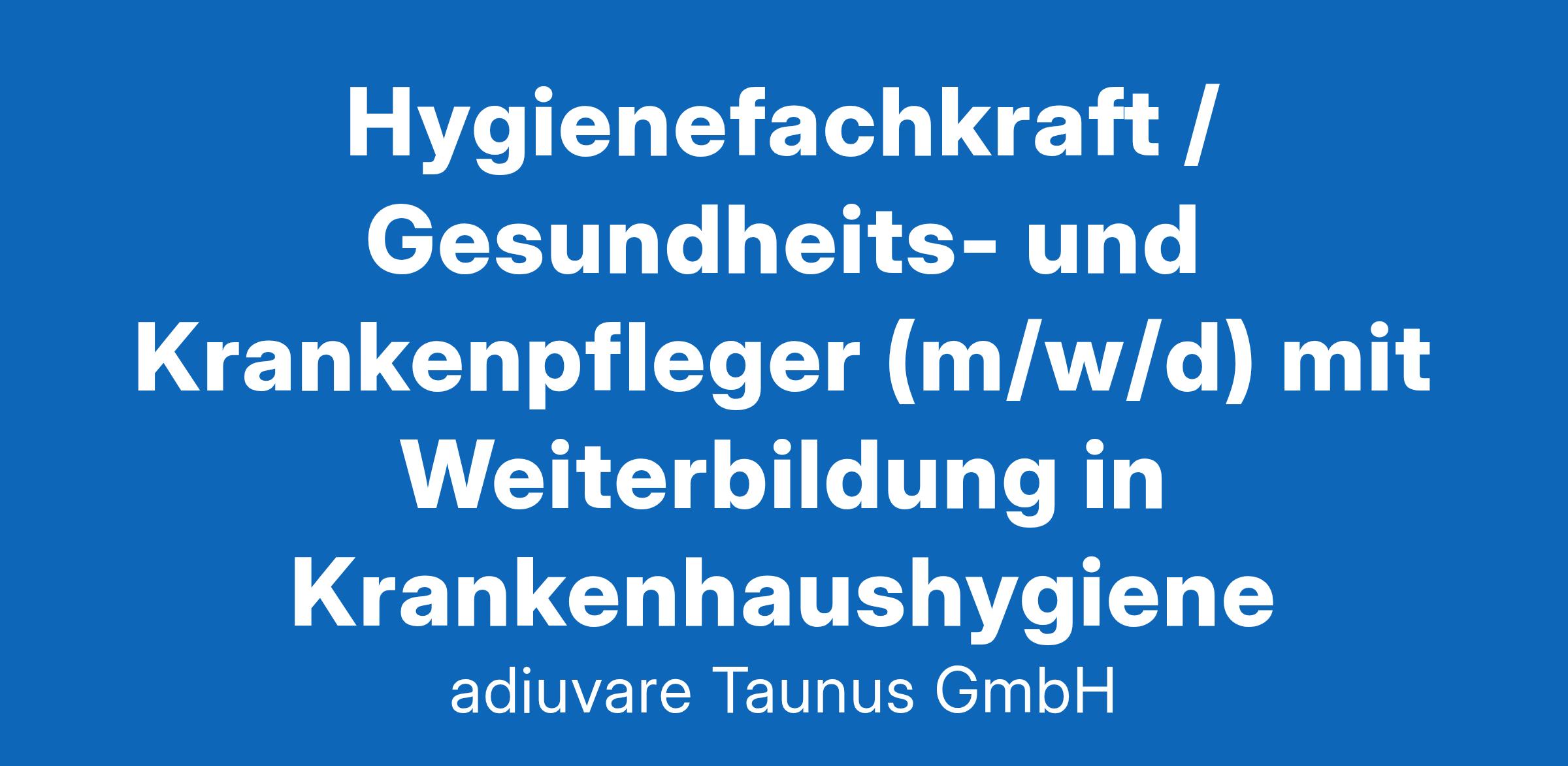 Die adiuvare Taunus GmbH sucht zum nächstmöglichen Zeitpunkt eine Hygienefachkraft (m/w/d) oder einen Gesundheits- und Krankenpfleger (m/w/d) mit Weiterbildung in Krankenhaushygiene befristet in Teilzeit (30 Std. / Woche) für das Geschäftszimmer des Netzwerks Multiresistente Erreger Rhein-Main (MRE-Netz Rhein Main). Taunus Befristet / Teilzeit Als Hygienefachkraft bzw. Gesundheits- und Krankenpfleger (m/w/d) entwickeln Sie eigenständig Schulungsunterlagen, PowerPoint-Präsentationen sowie Zertifizierungsvoraussetzungen für die verschiedenen Institutionsgruppen. Das Aufgabengebiet umfasst insbesondere folgende Schwerpunkte: Eigenständige Entwicklung von Schulungsunterlagen, PowerPoint-Präsentationen sowie Zertifizierungsvoraussetzungen für die verschiedenen Institutionsgruppen, Durchführung von Schulungen für Pflegekräfte sowie Ärztinnen und Ärzte überwiegend in Form von Inhouse-Schulungen Versand von Informationen Telefon-Helpdesk Aufarbeitung und statistische Auswertung von Untersuchungsergebnissen Regelmäßige Fortbildungen und der Austausch mit anderen Netzwerken gehören ebenso zu Ihren Aufgaben wie die Kommunikation mit übergeordneten Behörden. Auch die selbstständige Verwaltung der Homepage sowie die Pressekommunikation zählen zu Ihrem Tätigkeitsbereich. Wir erwarten: Hohe persönliche Einsatzbereitschaft, Engagement und Flexibilität Sehr gute EDV-Kenntnisse, insbesondere im Umgang mit den gängigen Office-Anwendungen Organisations- und Durchsetzungsvermögen Wirtschaftliches Denken Soziale und kommunikative Kompetenz Teamfähigkeit Der Führerschein der Klasse B und die Bereitschaft zur dienstlichen Nutzung des eigenen PKW gegen Kostenerstattung werden vorausgesetzt. Die monatliche Vergütung richtet sich nach Ihrem bisherigen Werdegang und beträgt bei einer Vollzeitstelle (39 Std. / Woche) zwischen 3.200 € und 3.600 € brutto. Ihre Bewerbung: Das Bewerbungsmanagement wird im Auftrag der adiuvare Taunus GmbH durch den Hochtaunuskreis durchgeführt. Ihre Kurzbewerbung, bestehend aus Anschreiben, Lebenslauf und der Angabe des frühestmöglichen Dienstantritts, richten Sie daher bitte in elektronischer Form per E-Mail bis zum 18. Februar 2025 an adiuvare Taunus GmbH Ludwig-Erhard-Anlage 1-5 | D-61352 Bad Homburg v. d. Höhe