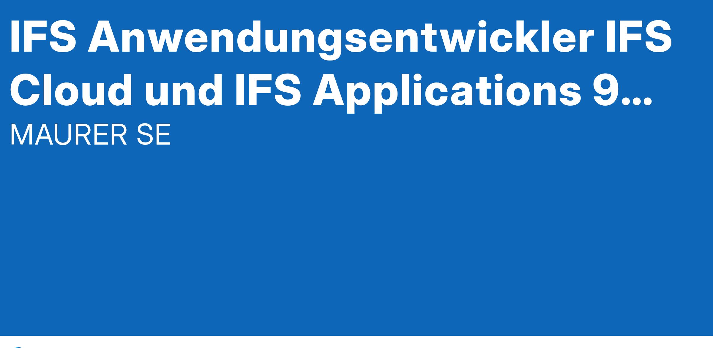 IFS Anwendungsentwickler IFS Cloud und IFS Applications 9 (m/w/d)