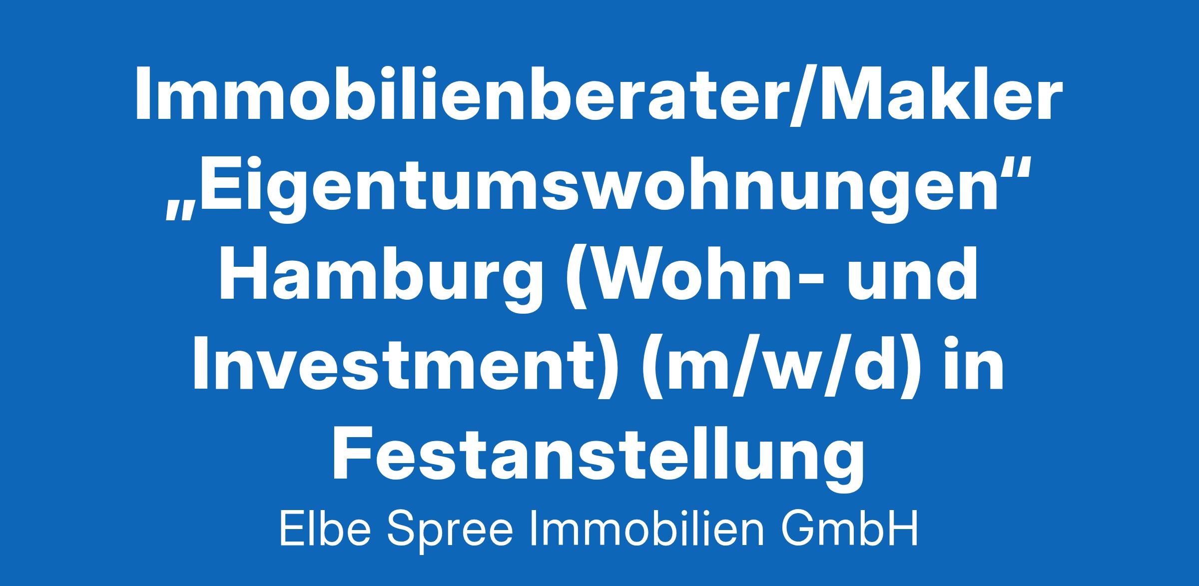 Immobilienberater/Makler „Eigentumswohnungen" Hamburg (Wohn- und Investment) (m/w/d) in Festanstellung Hamburg Vollzeit Die Elbe & Alster GmbH agiert als neue Tochtergesellschaft der Elbe & Spree Immobilien Gruppe mit dem Fokus auf Premium-Wohneigentum. Als modernes Maklerunternehmen hat diese den operativen Fokus auf die Vermittlung von Luxus-Wohnimmobilien in den Metropolregionen Hamburg und Umgebung gelegt. Unser motiviertes Team, bestehend aus langjährig erfahrenen und jungen Mitarbeitern aus der Immobilienwirtschaft, verbindet ein gemeinsamer Nenner: die Leidenschaft für Immobilien und den kompetenten Service. Bei Elbe & Spree Immobilien suchen wir durchgehend nach Dienstleistungstalenten. So suchen wir ab sofort : Immobilienberater / Makler für Luxus-Eigentumswohnungen und Premium-Liegenschaften in Hamburg (m/w/d) in Festanstellung. Ihre Aufgaben: Eigenverantwortliche Akquisition von Vermittlungsaufträgen und deren Betreuung bis zum erfolgreichen Verkauf Bewertung und Präsentation von Immobilien Beratung und Begleitung von Kunden bis zum Vertragsabschluss und darüber hinaus Verkauf von Premium-Eigentumswohnungen aus dem Auftragsbestand Ihr Profil: Sie sind ein Unternehmertyp (m/w/d) und bevorzugen Eigenverantwortung statt Konzernstruktur. Sie besitzen eine abgeschlossene immobilienspezifische Ausbildung oder ein entsprechendes Studium, mit Berufserfahrung als Immobilienmakler (m/w/d). Sie schätzen es, sich auf den Verkauf und die Beratung konzentrieren zu können und parallel die vorhandene unterstützende Struktur eines etablierten Immobilienmakler-Backoffice im Rücken zu haben. Sie sind kommunikativ, professionell, integer sowie emphatisch und übernehmen für zufriedene Kunden und optimale Prozesse persönliche Verantwortung. Sie sind erfolgreich in eigenverantwortlicher Akquise und im Verkauf und mögen den Umgang mit Menschen. Sie sind sich bewusst, dass der eigene Erfolg mit der eigenen Leistung korreliert. Wir bieten Ihnen: Eine Festanstellung mit solidem Basisgehalt und leistungsbezogenen Höchstprovisionen der Branche Autarkes, eigenverantwortliches Agieren Ein professionelles Team, dass sich gegenseitig unterstützt und mit Spaß sowie Leidenschaft agiert Intern unterstützendes Marketing- und Vertriebsmanagement, damit Sie sich auf Ihre Kunden konzentrieren können Förderung und Fortbildung Ein modernes Arbeitsumfeld in der Hamburger-Innenstadt oder dem HH-Eppendorf-Store Flexible Aufstiegsmöglichkeiten bis hin zum eigenen Beratungsstore Firmenwagen (Elektro) Kontakt: Sollten Sie sich in den vorausgegangenen Zeilen vollständig wiederfinden, freuen wir uns über Ihre aussagefähigen Bewerbungsunterlagen, ausschließlich per E-Mail an: bewerbung@elbe-spree.com Elbe & Spree Immobilien GmbH Eppendorfer Baum 44 20249 Hamburg www.elbe-spree.com Ich bin interessiert >