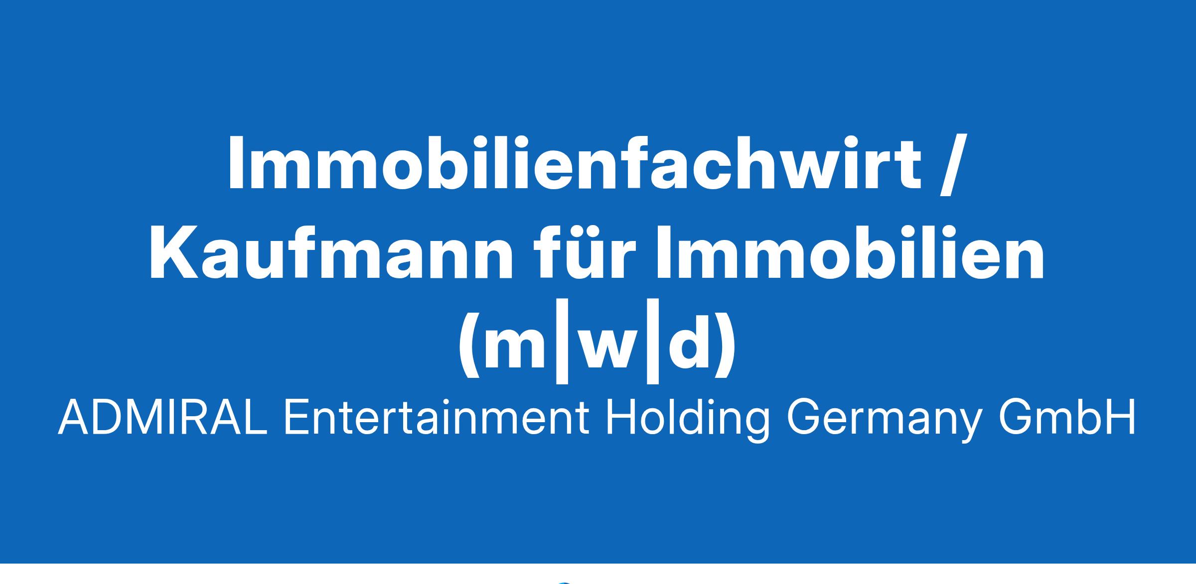 Vollzeit, UnbefristetPfullendorfMit der ADMIRAL Entertainment Holding Germany GmbH stehen wir in der langjährigen Tradition innovativen Automatenspiels. 1966 wurde in Pfullendorf unter dem Namen Restle Automaten das Vorgängerunternehmen von ADMIRAL Entertainment Holding Germany GmbH gegründet. Wir sind einer der führenden Betreiber von staatlich konzessionierten Spielhallen in Deutschland. Bundesweit betreiben wir rund 435 ADMIRAL Spielhallen mit etwa 3.000 Mitarbeitern. Die ADMIRAL Entertainment Holding Germany GmbH gehört zur NOVOMATIC AG mit Sitz in Österreich. Damit gehören wir zu einem der größten Gaming-Technologiekonzerne weltweit mit rund 24.500 Mitarbeitern.Zur Verstärkung unseres Teams im Bereich Immobilienverwaltung suchen wir zum nächstmöglichen Zeitpunkt am Standort Pfullendorf einen Immobilienfachwirt / Kaufmann für Immobilien (m|w|d).Immobilienfachwirt / Kaufmann für Immobilien (m|w|d)Ihre Aufgaben