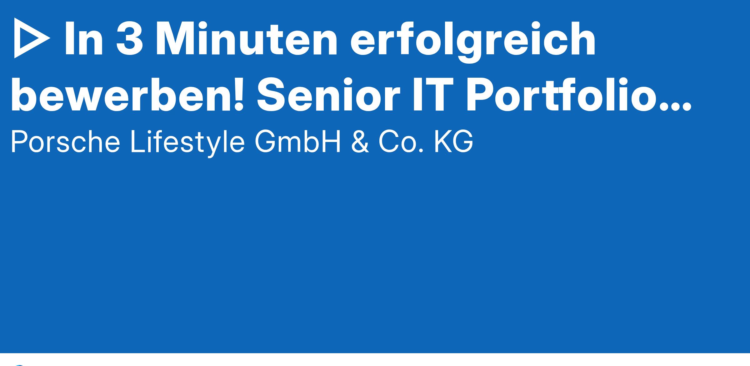 ▷ In 3 Minuten erfolgreich bewerben! Senior IT Portfolio Manager (m/w/d)