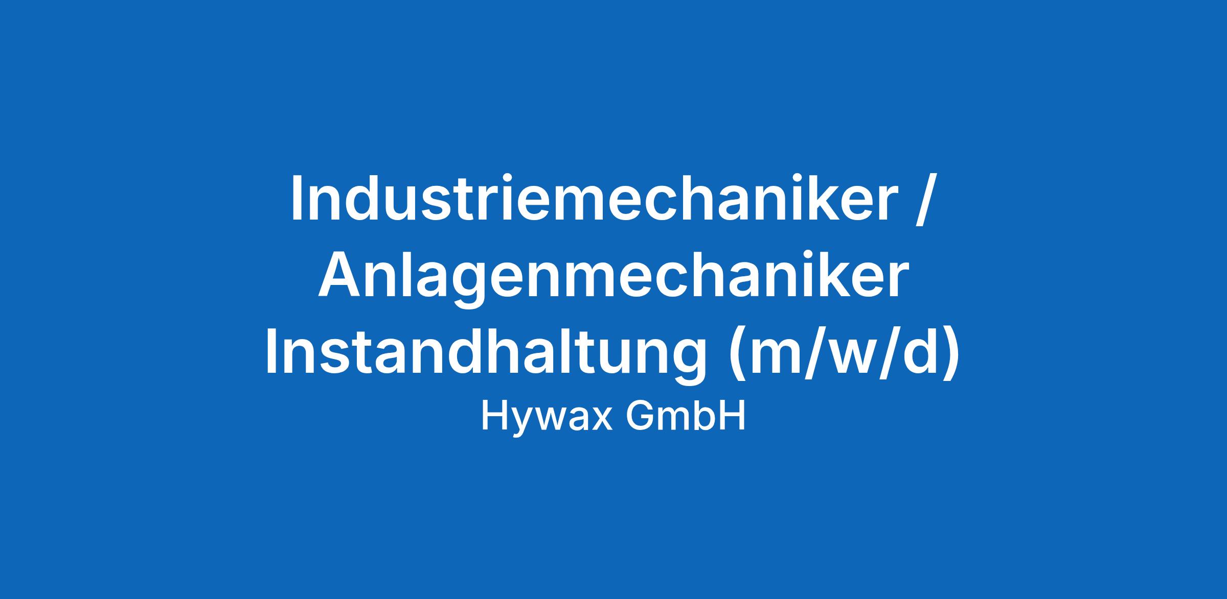 Industriemechaniker / Anlagenmechaniker Instandhaltung (m/w/d)