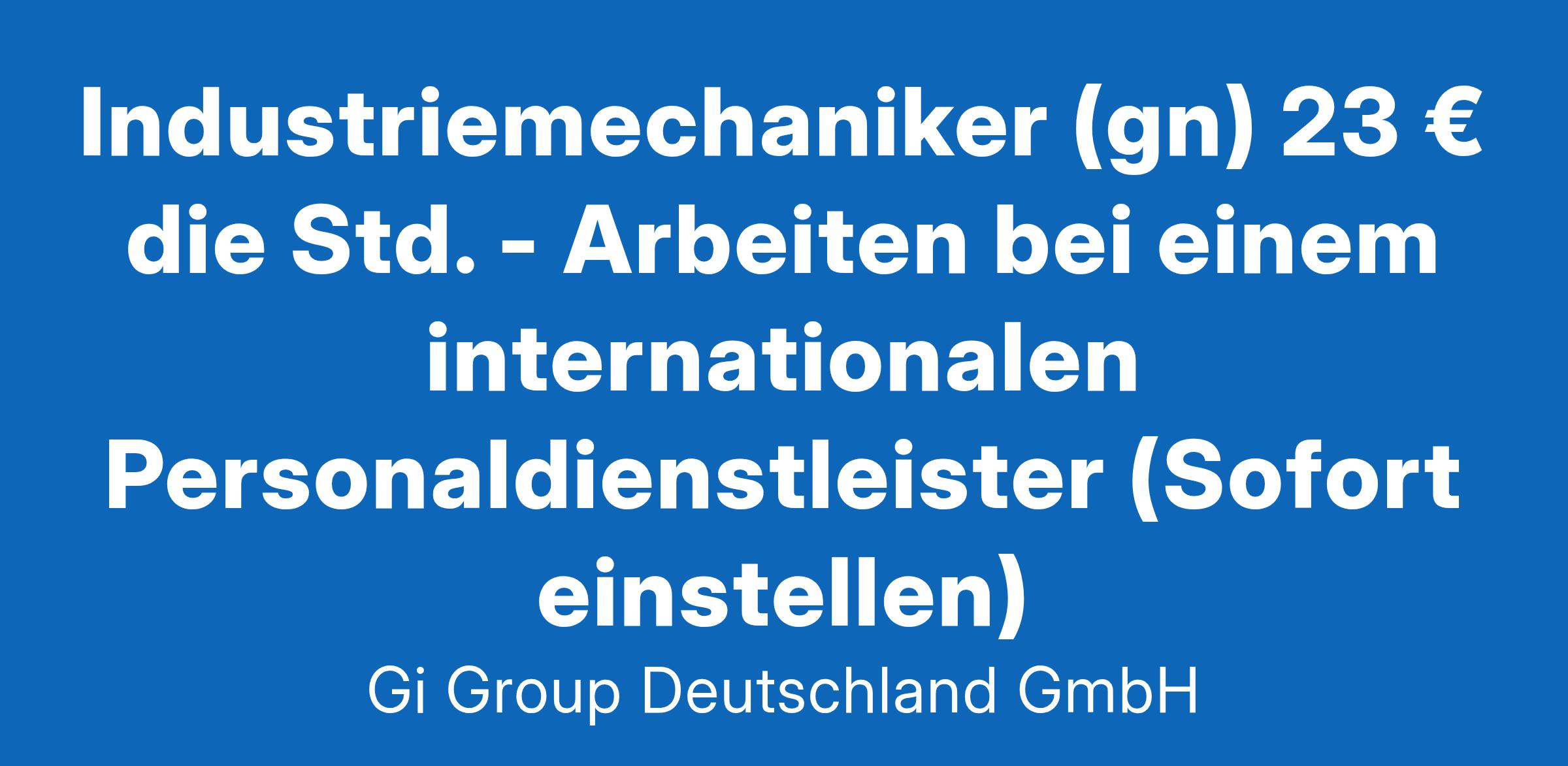 Industriemechaniker (gn) 23 € die Std. - Arbeiten bei einem internationalen Personaldienstleister (Sofort einstellen)