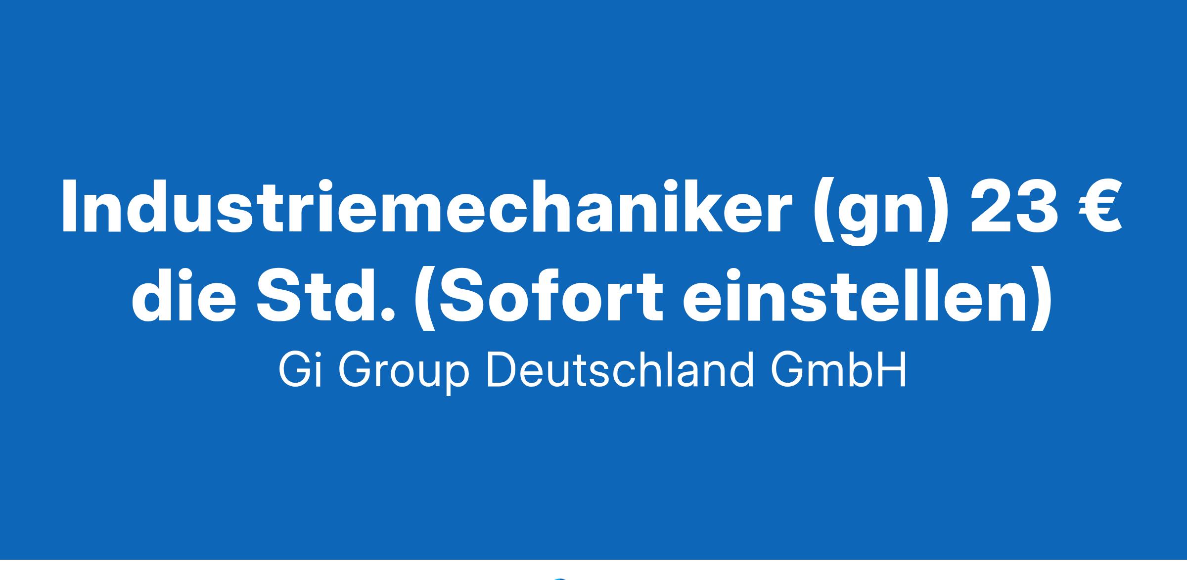 Industriemechaniker (gn) 23 € die Std. ab sofort in Vollzeit in Hamburg Die Gi Group ist ein international agierender Personaldienstleister mit mehr als 500 Standorten in 40 Ländern. Für unseren namenhaften Kunden aus der Stahlindustrie, suchen wir jetzt einen Industriemechaniker (gn). Deine Aufgaben Vorkomplettierung von Fahrtreppen Justierung des Führungssystems mit Hilfe einer Justiervorrichtung Montage von Kammplatten und Rahmen Montage der Balustrade mit Hilfe von Handlingsgeräten Probelauf und Endlauf von Standard-Fahrtreppen Montage von Standard- und komplexen Außenverkleidungen Manuelle Montage des Führungssystems einer Fahrtreppe Montage des Handlaufs einer Fahrtreppe Demontagearbeiten Dein Profil Abgeschlossene technische Ausbildung (bevorzugt Industriemechaniker, Anlagenmechaniker oder vergleichbare Ausbildung) Erste Kenntnisse im Lesen von techn. Zeichnungen Kranschein wünschenswert aber nicht zwingend notwendig Unser Angebot Ein langfristiger Einsatz in einem unserer Top Kundenunternehmen mit der Chance auf Übernahme Eine überaus attraktive Vergütung Urlaubs- und Weihnachtsgeld Gute Erreichbarkeit mit dem PKW und den öffentlichen Verkehrsmitteln Deine Bewerbung Für Deine Bewerbung als Industriemechaniker klicke bitte einfach auf „Jetzt bewerben“. Dort kannst Du Deine Kontaktdaten eingeben sowie Deinen Lebenslauf und Deine Bewerbungsunterlagen hochladen. Du benötigst dafür nur ca. 1 Minute. Dein zuständiger Personaldisponent wird sich bei Dir schnellstmöglich melden. Gerne kannst Du uns auch Deine Bewerbungsunterlagen per E-Mail zusenden. Wir freuen uns auf Deine Bewerbung! Unsere Stellenangebote richten sich an Arbeitssuchende jeglichen Geschlechts. (gn) = geschlechtsneutral. Kontakt Sonja Hagenbucher