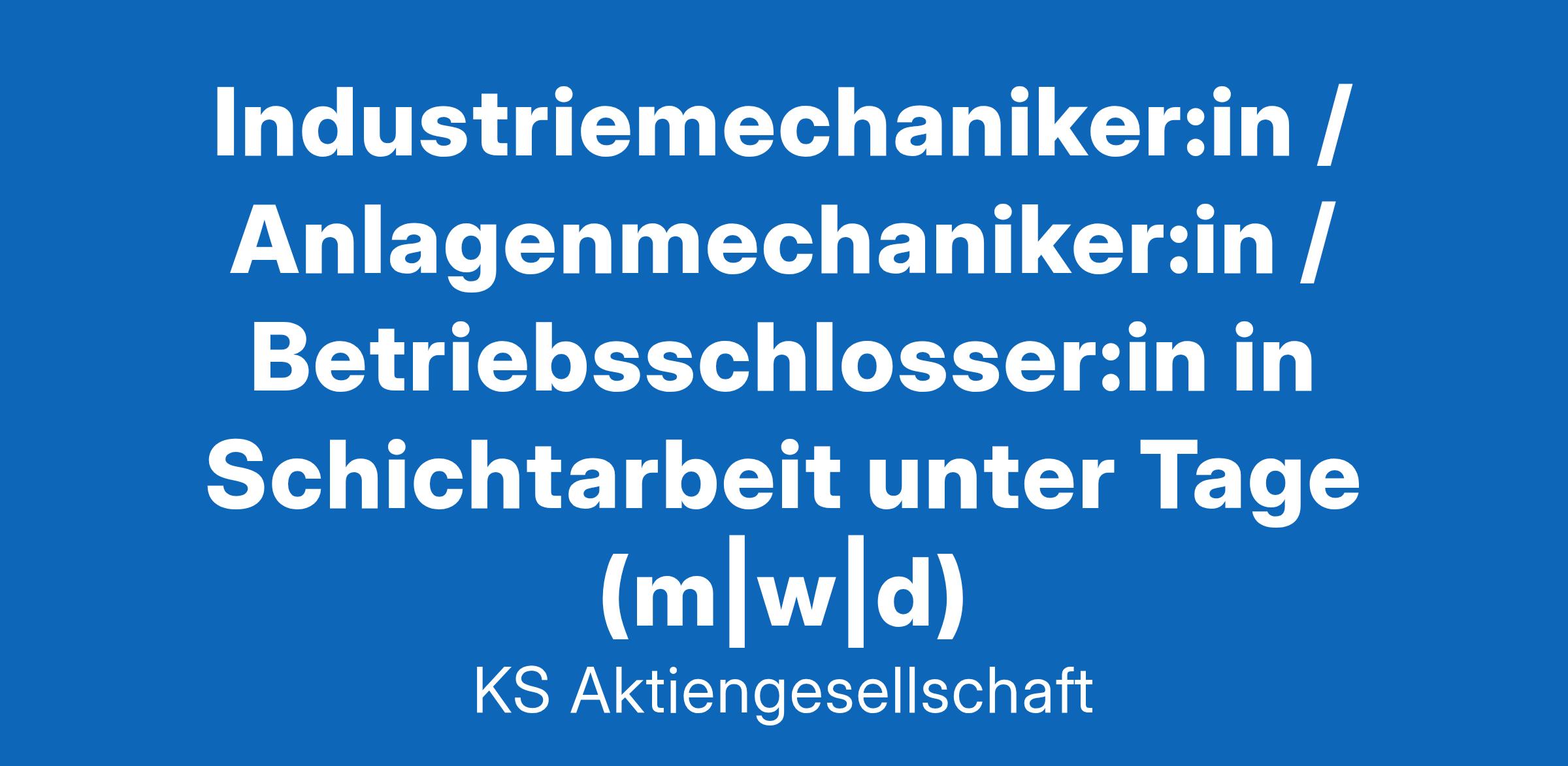 Industriemechaniker:in / Anlagenmechaniker:in / Betriebsschlosser:in in Schichtarbeit unter Tage (m|w|d)