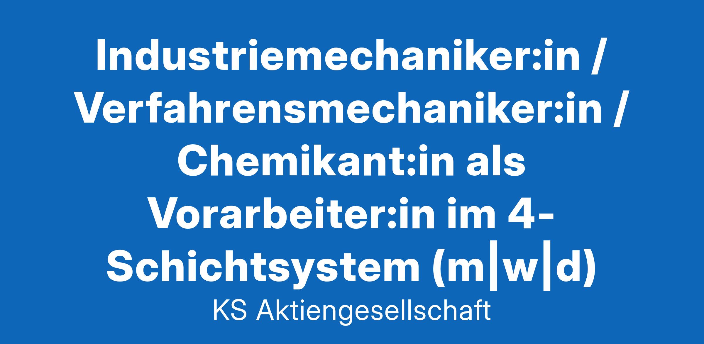Industriemechaniker:in / Verfahrensmechaniker:in / Chemikant:in als Vorarbeiter:in im 4-Schichtsystem (m|w|d)