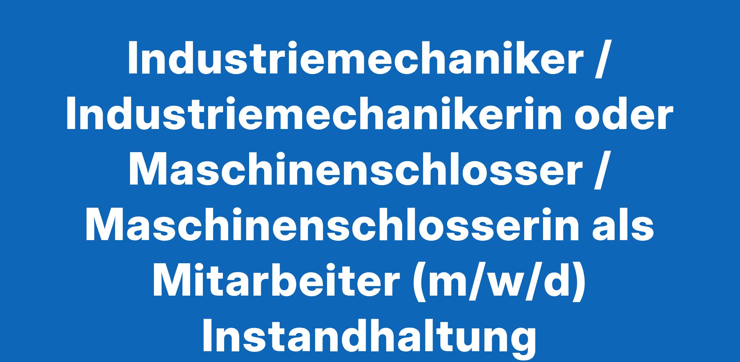 Industriemechaniker / Industriemechanikerin oder Maschinenschlosser / Maschinenschlosserin als Mitarbeiter (m/w/d) Instandhaltung