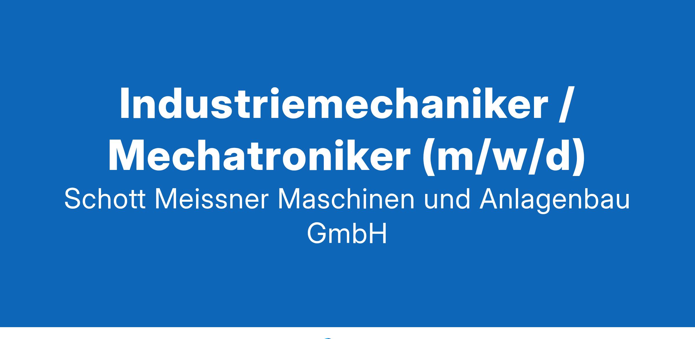 Bitte beachten Sie, dass wir bei elektronischen Bewerbungen ausschließlich PDF Dokumente berücksichtigen können.HIER BEWERBENSchott & Meissner GmbH Maschinen- und Anlagenbau