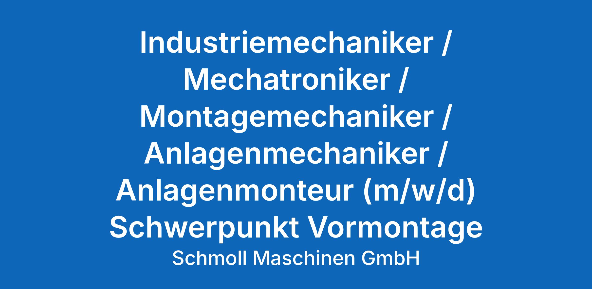 Industriemechaniker / Mechatroniker / Montagemechaniker / Anlagenmechaniker / Anlagenmonteur (m/w/d) Schwerpunkt Vormontage