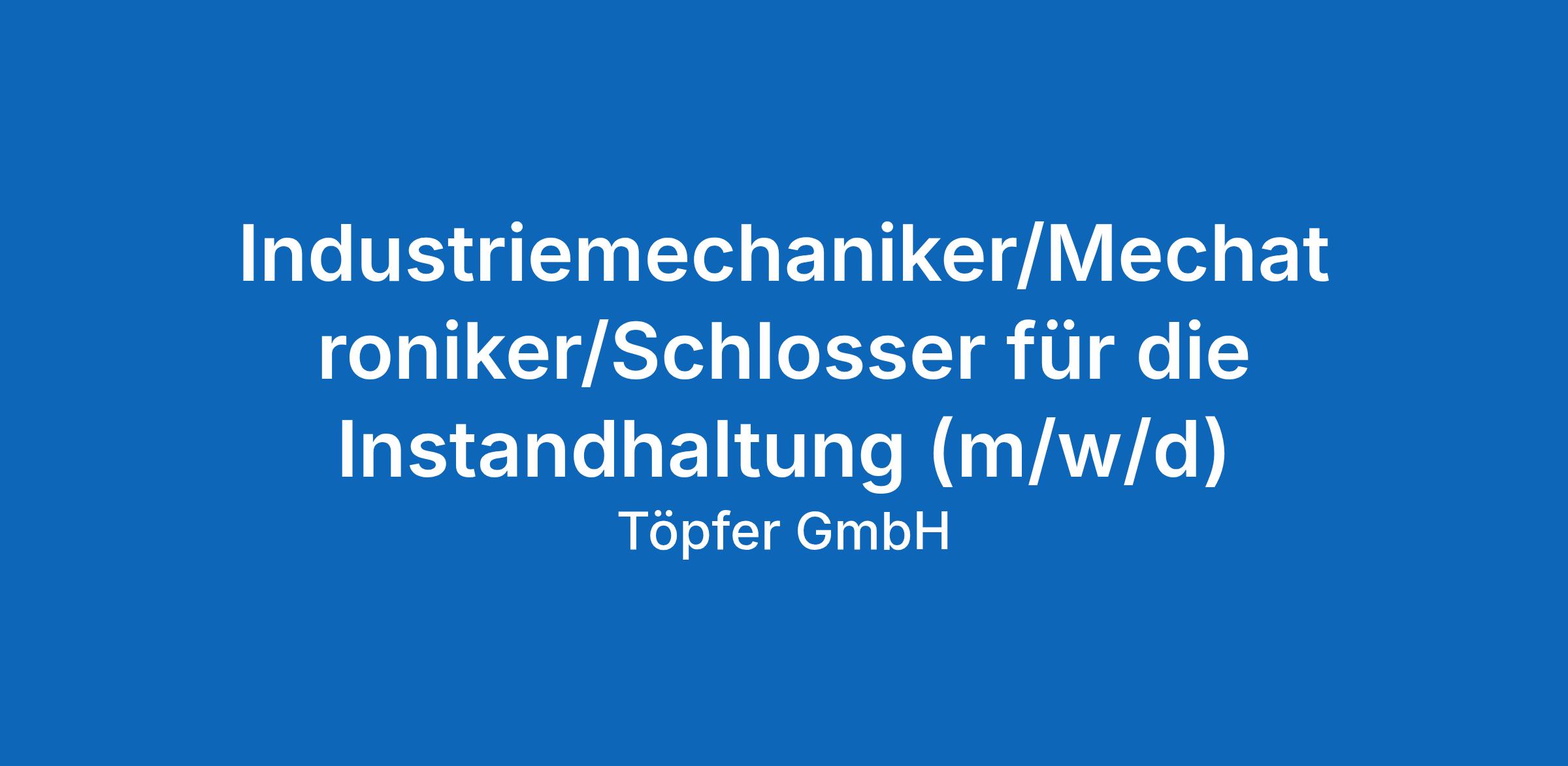 Industriemechaniker/Mechatroniker/Schlosser für die Instandhaltung (m/w/d)
