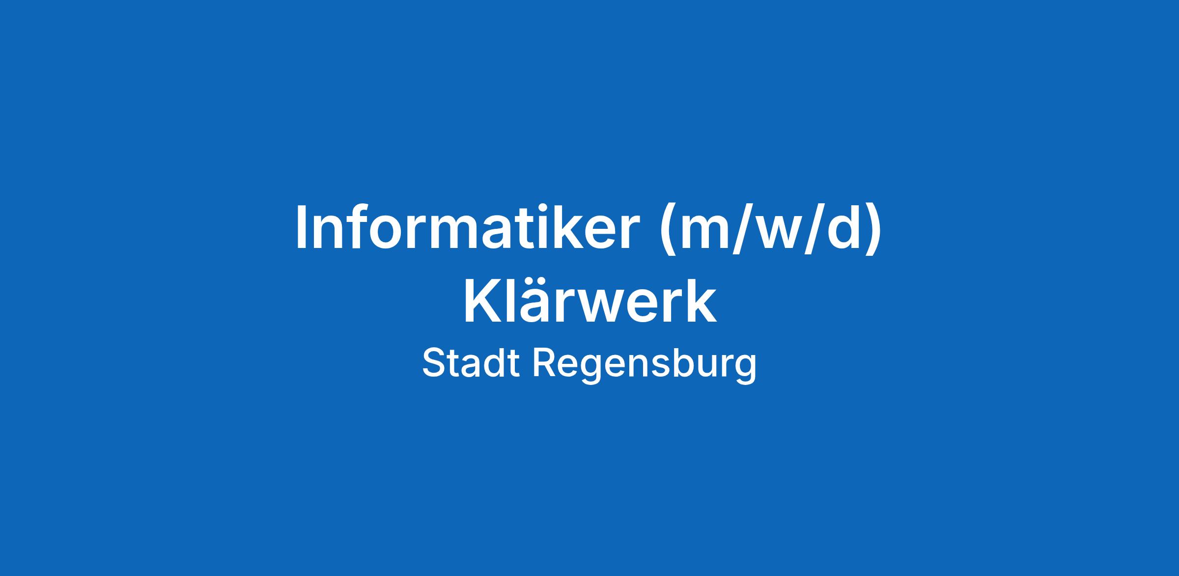 Gemeinsam mit der Stadt Regensburg die Zukunft gestalten! Wir suchen für das Tiefbauamt, Sachgebiet Klärwerk, zwei Informatiker /-innen (m/w/d).