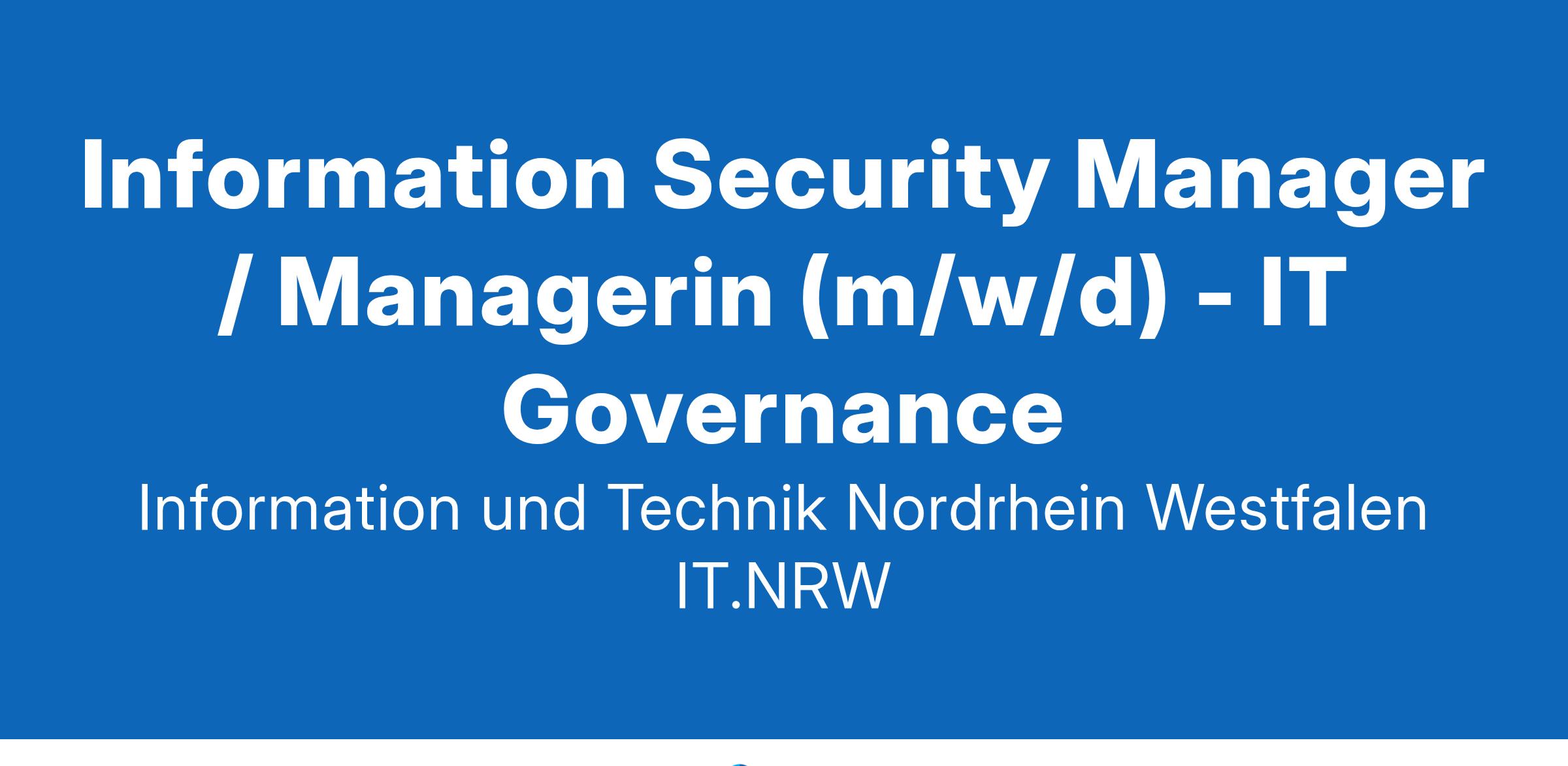 Bei IT.NRW geht es um mehr als „nur“ einen Job. Es geht um einen wichtigen gesellschaftlichen Auftrag: ein ganzes Bundesland digital vorwärtsbringen. Als Information Security Manager / Managerin (m/w/d) in der Informationssicherheit wirken Sie aktiv dabei mit, NRW sicherer zu gestalten. Helfen Sie mit, das Vertrauen der Bevölkerung in digitale Angebote unseres Bundeslandes zu stärken. Bringen Sie sich jetzt ein und leisten Sie einen wichtigen Beitrag für 18 Millionen Bürgerinnen und Bürger in NRW!