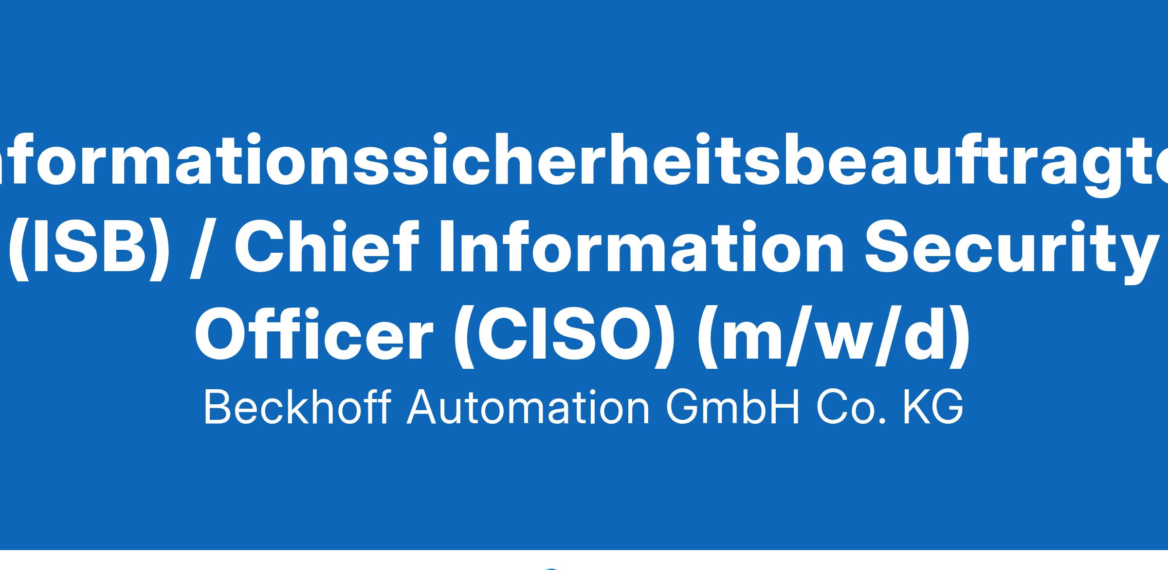 Beckhoff Automation ist einer der weltweit führenden Spezialisten für Automatisierungs- und Steuerungstechnik. Als inhabergeführtes Familienunternehmen realisieren wir seit 1980 innovative Automatisierungssysteme auf der Grundlage PC-basierter Steuerungstechnik. Heute erwirtschaften wir mit rund 5.500 Mitarbeitern (März 2024) an mehr als 75 Standorten weltweit einen Umsatz von über 1,75 Mrd. Euro (Geschäftsjahr 2023). Unsere einzigartige Unternehmenskultur ist geprägt durch eine familiäre Atmosphäre und bietet viel Freiraum für die Umsetzung eigener Ideen. Das sorgt für eine hohe Zufriedenheit und viel Spaß bei der Arbeit. Wer sich einmal für Beckhoff entscheidet, bleibt oft ein ganzes Berufsleben lang.Informationssicherheitsbeauftragter (ISB)/Chief Information Security Officer (CISO) (m/w/d)TätigkeitsbereichGesamtverantwortung für die strategische Weiterentwicklung und Umsetzung der Informationssicherheitsstrategie von Beckhoff - im Team mit den bestehenden Fachstellen und -abteilungen