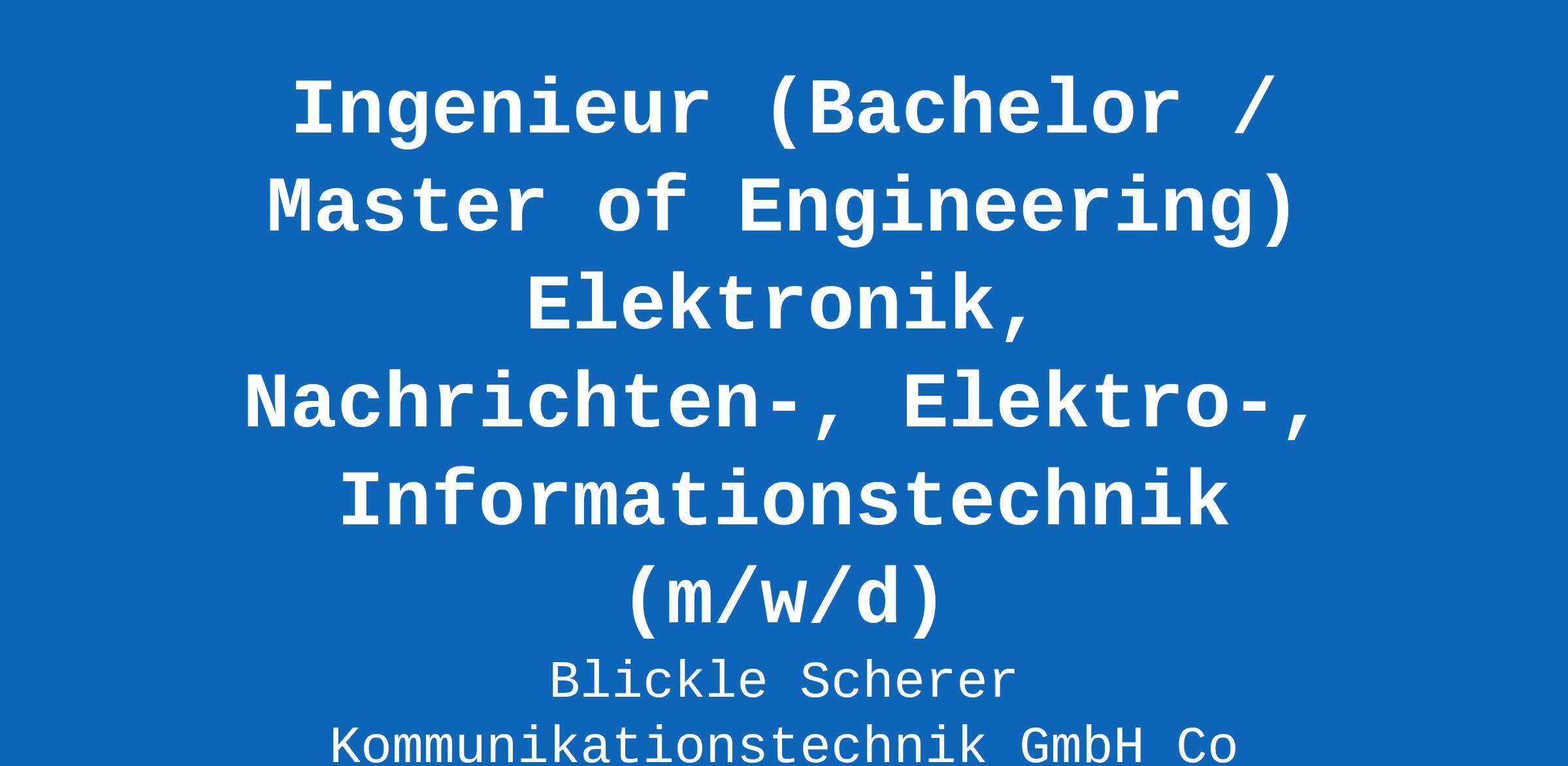 Blickle & Scherer Kommunikationstechnik ist markt- und technologieführender Systemanbieter professioneller Funktechnik für systemkritische Infrastruktur mit Sitz in Karlsruhe, und weiteren Standorten in Koblenz und Stockach. Arbeiten bei Blickle & Scherer heißt, anspruchsvolle komplexe Aufgaben... Ingenieurwesen;Systemintegration;Flexibilität;R;Nachrichtentechnik;Kommunikation;Mobilfunk;Kommunikation;Fehlerdiagnose;Engagement;Funktechnik;Inbetriebnahme;Einweisung;Elektroniktechnik;IT-Bereich;Planung Original Stellenanzeige auf StepStone.de – Jetzt Jobagent bei StepStone einrichten und Traumjob finden! https://bit.ly/2KOagYD Mehr Informationen zu Arbeitgebern, Gehaltsdaten und Karrieretipps finden Sie auf StepStone.de