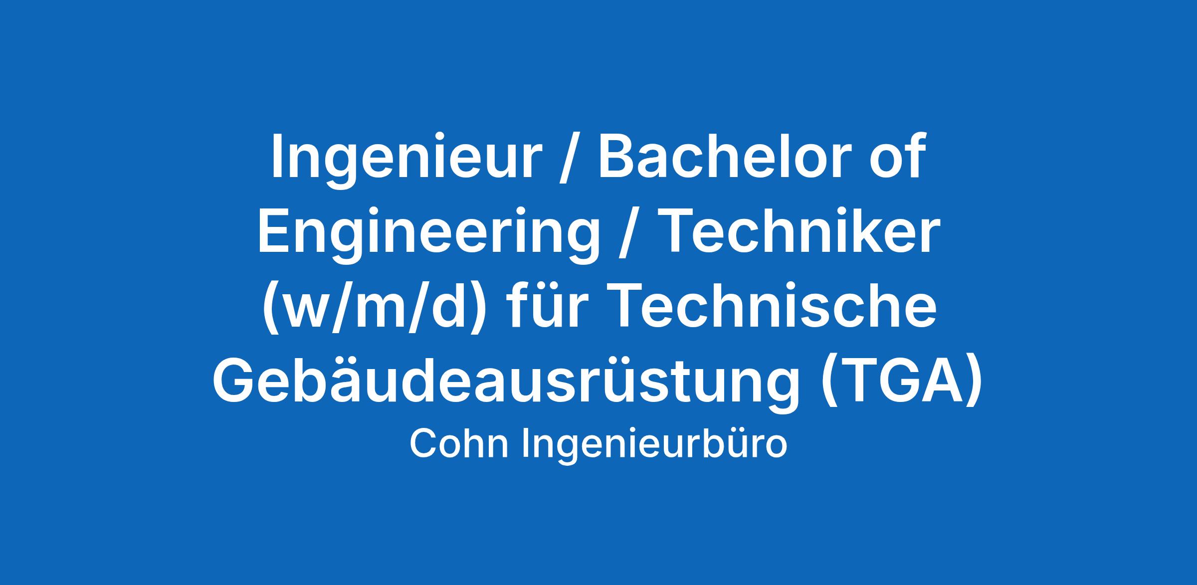 Ingenieur / Bachelor of Engineering / Techniker (w/m/d) für Technische Gebäudeausrüstung (TGA)