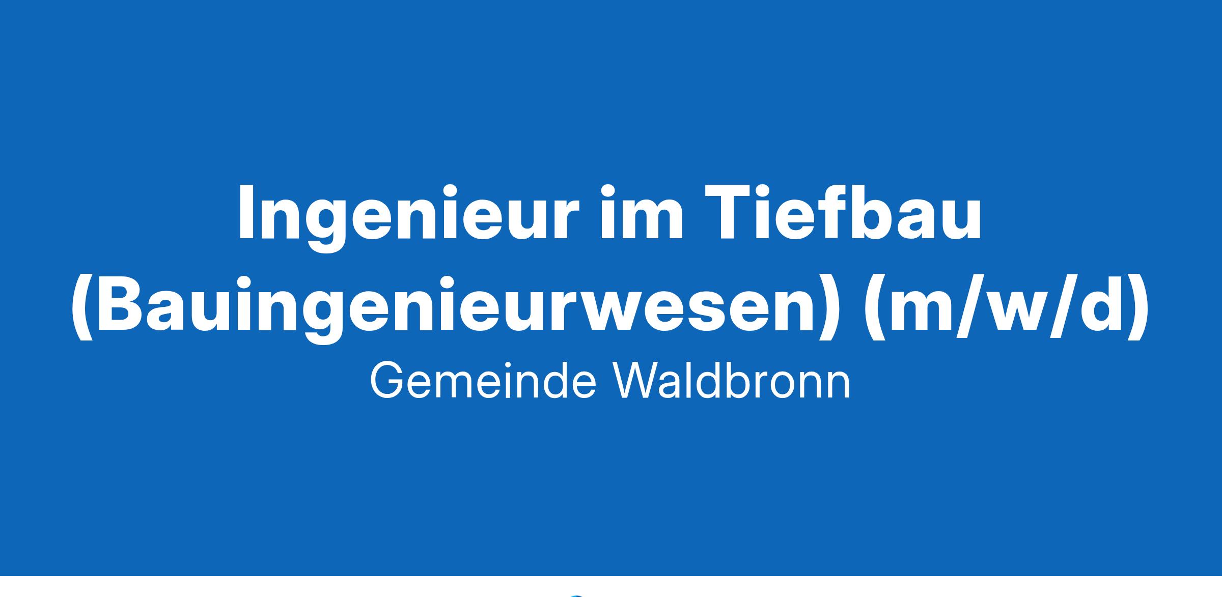 Arbeiten mit Wohlfühlfaktor Die Gemeinde Waldbronn (13.000 Einwohner) unterhält eine große Infrastruktur im Bereich Tiefbau. sucht deshalb zum nächstmöglichen Zeitpunkt einen Ingenieur im Tiefbau (Bauingenieurwesen) (m/w/d) Das Aufgabengebiet umfasst Bauherrenvertretung Bauleitung und Überwachung Tiefbaumaßnahmen Konzeptentwicklung und Zusammenarbeit mit Planungsbüros Planung, Entwurf und Konstruktion kleinerer Sanierungs-Maßnahmen Kalkulation, Auftragsabwicklung, Abrechnung von Tiefbaumaßnahmen Umsetzen von Verträgen nach VOB und UVgO Vertretung der Maßnahmen in den Gremien der Gemeinde Termin-, Kosten- und Qualitätsmanagement Bewertung der Nachhaltigkeit, im Rahmen der SDG, von Tiefbauprojekten Technische Betriebsleitung des Eigenbetriebs Wasserversorgung Stellvertretung Fachbereichsleitung Wir erwarten eine abgeschlossene Ausbildung/Studium als Bauingenieur oder eine vergleichbare Ausbildung Umfangreiches Fachwissen im Bereich Tiefbau (Straßenbau, Kanal, Trinkwasser) Kompetenz in der Bauleitung von Tiefbauarbeiten Kenntnisse in der Anwendung fachspezifischer Software (E-Vergabe, Ausschreibung) Kenntnisse in der VOB und UVgO Kenntnis der technischen Baubestimmungen und der DIN Organisationsfähigkeit und Zuverlässigkeit Team- und Kommunikationsfähigkeit Wir bieten eine Beschäftigung nach dem TVöD bis Entgeltgruppe EG 11 eine unbefristete, vielseitige und verantwortungsvolle Tätigkeit ein angenehmes Arbeitsumfeld und eine gute Work-Life-Balance durch flexible Arbeitszeiten im Rahmen unserer Gleitzeitregelung ein modernes und umfangreiches Gesundheitsmanagement sowie alle sonstigen Sozialleistungen des öffentlichen Dienstes Ihre Bewerbungsunterlagen