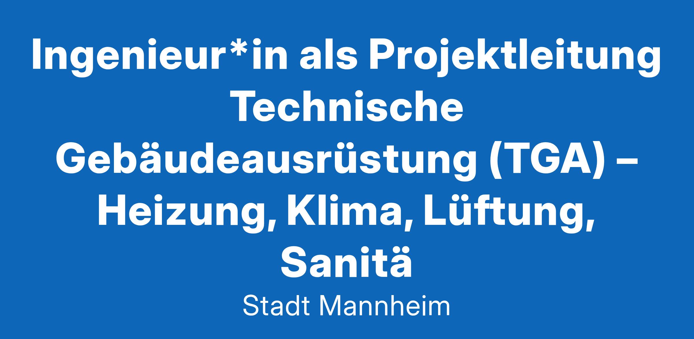 Gemeinsam für eine lebenswerte Stadt Mannheim Gestalten Sie zusammen mit über 8.000 Kolleg*innen die größte Stadt der Metropolregion Rhein-Neckar. Nachhaltigkeit, Familienfreundlichkeit, Vielfalt und Verlässlichkeit – dafür stehen wir. Bei uns bringen über 260 verschiedene Berufsfelder Innovation und Tradition zusammen. Der Fachbereich Bau- und Immobilienmanagement sucht zum nächstmöglichen Zeitpunkt eine*n INGENIEUR*IN ALS PROJEKTLEITUNG TECHNISCHE GEBÄUDEAUSRÜSTUNG (TGA) - HEIZUNG, KLIMA, LÜFTUNG, SANITÄR (M/W/D) Entgeltgruppe 12 TVöD | Vollzeit | unbefristet Ihre Aufgaben Die technische Gebäudeausrüstung Heizung, Klima, Lüftung und Sanitär (TGA HKLS) bezieht sich auf die Anlagengruppen Abwasser-, Wasser-, und Gasanlagen, Wärmeversorgungsanlagen, raumlufttechnische Anlagen, nutzungsspezifische und verfahrenstechnische Anlagen, Gebäudeautomation und Automation von Ingenieurbauwerken für städtische Neubauten und Generalsanierungen. Ihnen obliegt die selbstständige Durchführung und Wahrnehmung der Projektleitung und Steuerung der TGA in den o. g. Gewerken: Auswahl, Beauftragung und Steuerung von internen sowie externen Planungsbeteiligten Vertrags-, Vergabe- und Risikomanagement Überwachung und Einhaltung der Projektrahmen Wahrnehmung von Bauherrenaufgaben über alle Leistungsphasen der HOAI Entwicklung und Überprüfung technischer Standards zur Optimierung der Betriebs- und Investitionskosten Auslobung und Durchführung von Hochbauwettbewerben Ihr Profil Sie verfügen über ein abgeschlossenes Studium der Fachrichtung Versorgungs- bzw. Gebäudetechnik mit dem Schwerpunkt HKLS (Dipl.-Ing. (FH), Bachelor) oder einen gleichwertigen tätigkeitsbezogenen Hochschulabschluss Sie haben Kenntnisse im Bau- und Vergaberecht, beispielsweise LBO, BimSchV, HOAI, VgV oder VOB sowie in deutschen und europäischen Normen für die Errichtung und den Betrieb von TGA, wie AMEV oder VDI Sie sind erfahren in der Projektbearbeitung und Projektentwicklung, weshalb Ihr wirtschaftliches Denken und Handeln eine Lebenszyklusbetrachtung mit energetisch optimierten Projektergebnissen ermöglicht Durch Ihre Fachkenntnisse können Sie technische Konzepte und Systemlösungen gewerkeübergreifend beurteilen Unser Angebot Als eine große Arbeitgeberin der Metropolregion Rhein-Neckar bieten wir neben beruflicher Sicherheit und ausgeprägter Familienfreundlichkeit, ein produktives Arbeitsumfeld mit zuverlässigen Strukturen. Sie finden bei uns spannende und abwechslungsreiche Tätigkeiten sowie eine dialogorientierte Führungskultur vor. Flexible Arbeitszeit, individuelle Arbeits- und Teilzeitmodelle, ein Jobticket und Kantinen gehören dabei ebenso zu den Angeboten für unsere Beschäftigten wie gezielte qualifizierte Weiterbildungen, ein innovatives Gesundheitsmanagement und die Möglichkeit zur Kinderbetreuung im Stadtnest2. Die Stadt Mannheim fördert die Gleichstellung ihrer Mitarbeiter*innen und begrüßt deshalb Bewerbungen aller Fachkräfte, unabhängig von Geschlecht, ethnischer, kultureller oder sozialer Herkunft, Alter, Religion, Weltanschauung, Behinderung oder sexueller Identität. Leisten Sie gemeinsam mit uns einen Beitrag für alle Bürger*innen und gestalten Sie das vielfältige und bunte Zusammenleben in unserer Stadt in einer weltoffenen und zukunftsorientierten europäischen Metropolregion. Weitere Informationen finden Sie auf unserer Karriereseite. Ihre Bewerbung Wir freuen uns auf Ihre Online-Bewerbung bis spätestens 14.02.2025 über unser Bewerbungsportal unter www.mannheim.de. Kontakt: Frau Grübbel 0621 293-7080