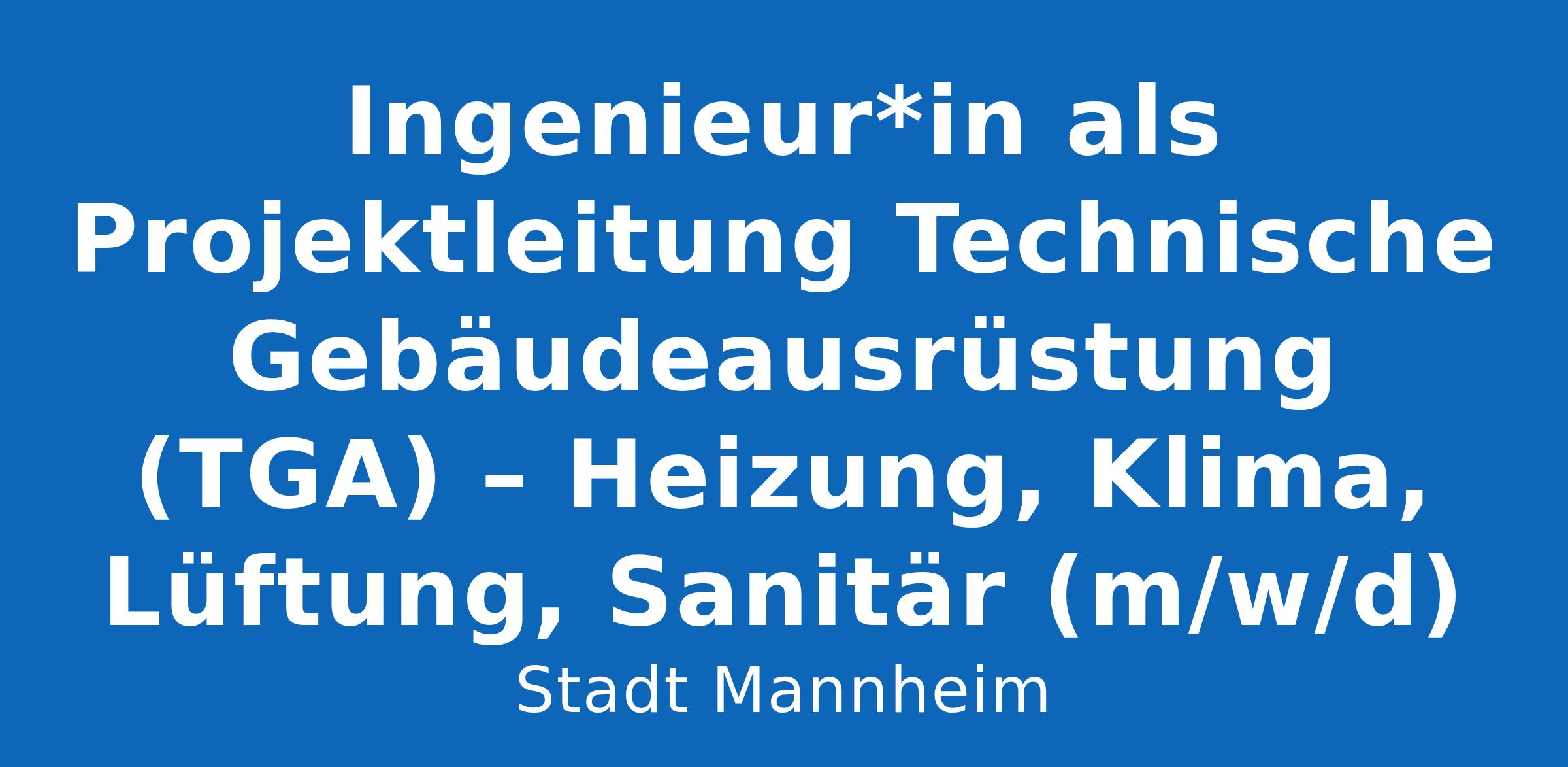 Gemeinsam für eine lebenswerte Stadt MannheimGestalten Sie zusammen mit über 8.000 Kolleg*innen die größte Stadt der Metropolregion Rhein-Neckar. Nachhaltigkeit, Familienfreundlichkeit, Vielfalt und Verlässlichkeit – dafür stehen wir. Bei uns bringen über 260 verschiedene Berufsfelder Innovation und Tradition zusammen.Der Fachbereich Bau- und Immobilienmanagement sucht zum nächstmöglichen Zeitpunkt eine*nINGENIEUR*IN ALS PROJEKTLEITUNG TECHNISCHE GEBÄUDEAUSRÜSTUNG (TGA) - HEIZUNG, KLIMA, LÜFTUNG, SANITÄR (M/W/D)