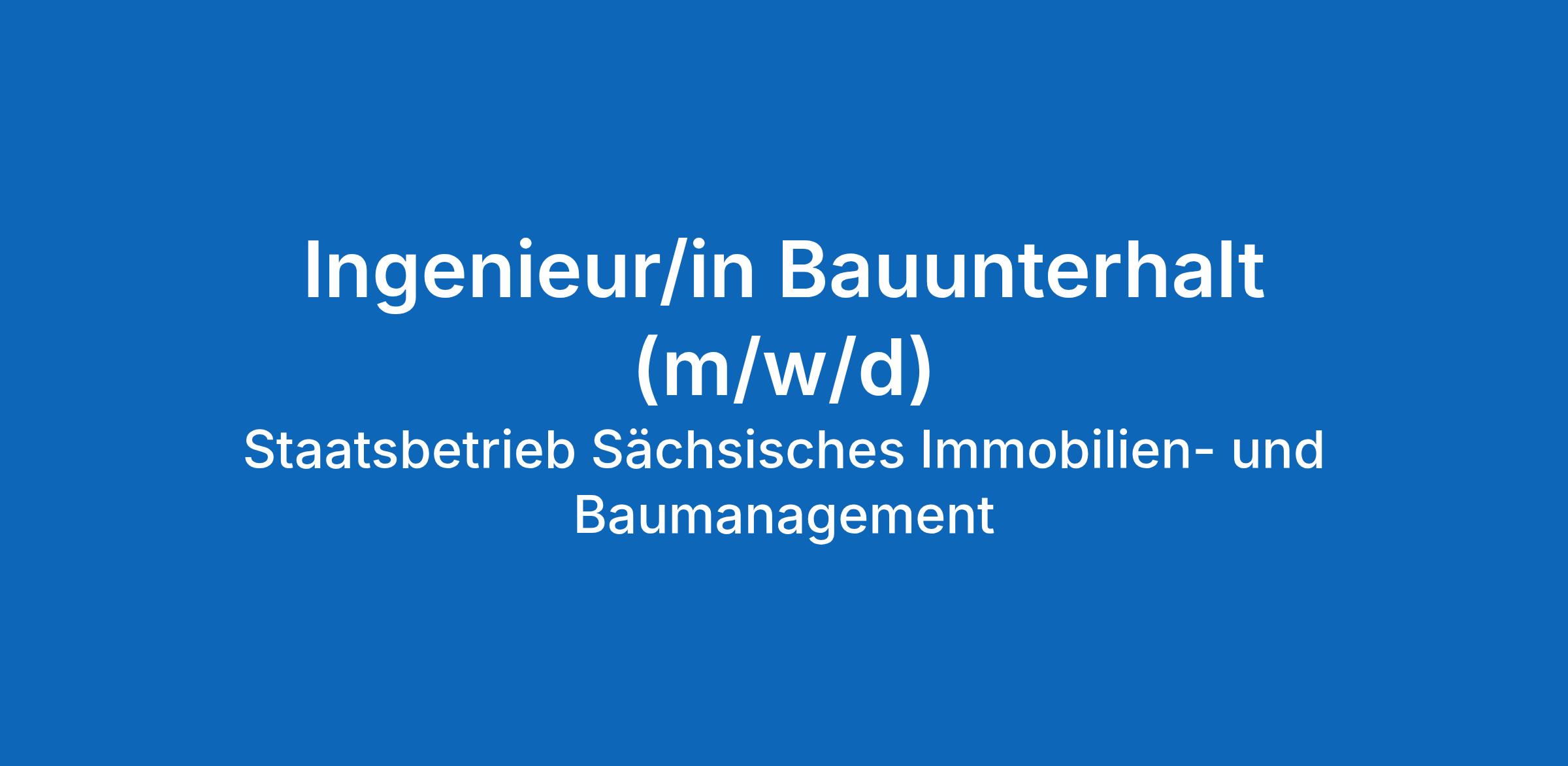 Ingenieur/in Bauunterhalt (m/w/d) für die Sachbearbeitung im Referat Immobilienmanagement in der Zentrale im Staatsbetrieb Sächsisches Immobilien- und Baumanagement, Dresden