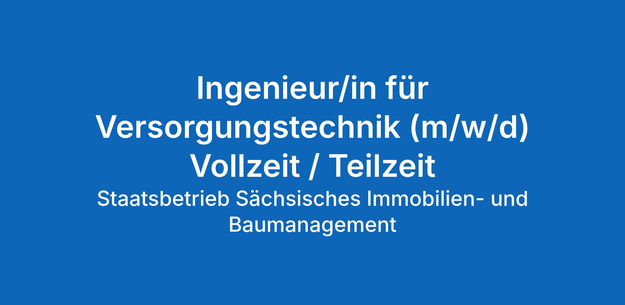 Ingenieur/in für Versorgungstechnik (m/w/d) unbefristet in Vollzeit im Staatsbetrieb Sächsisches Immobilien- und Baumanagement (SIB), Niederlassung Leipzig II