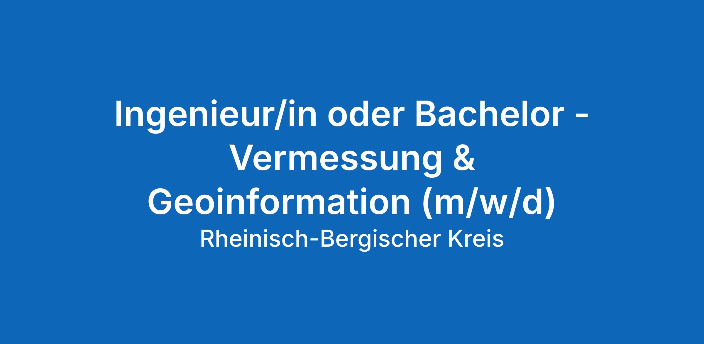 Der Rheinisch-Bergische Kreis ist eine öffentliche Verwaltung mit rund 1.300 Mitarbeitenden, die sich als modernes Dienstleistungsunternehmen für ihre circa 284.000 Einwohnenden versteht. Für das Amt für Liegenschaftskataster und Geoinformation suchen wir zum nächstmöglichen Zeitpunkt eine/n