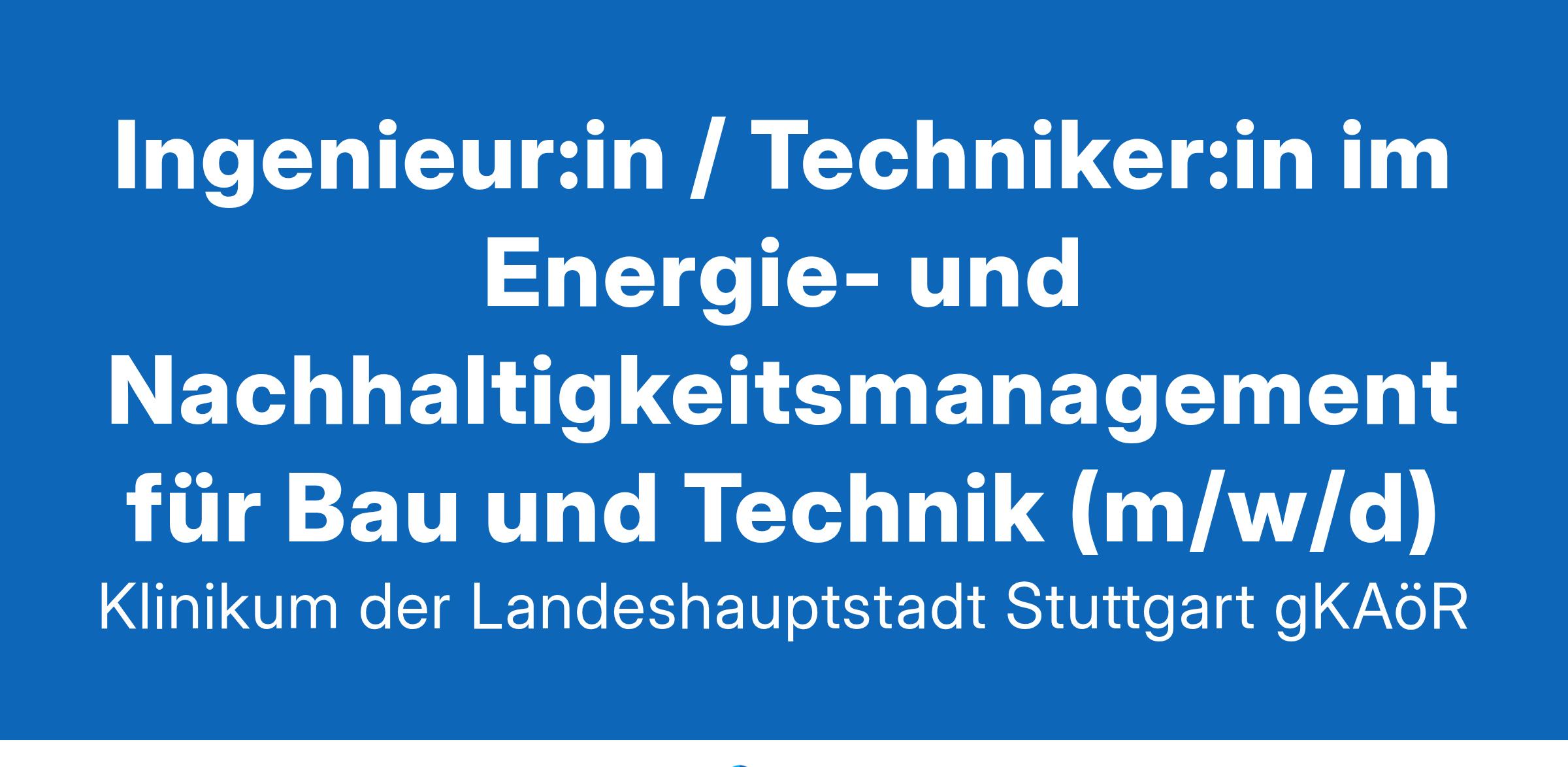 Klinikum Stuttgart - Entscheiden Sie sich für etwas Großes. Wir sind mit unseren drei Häusern „Katharinenhospital“, „Olgahospital“ und „Krankenhaus Bad Cannstatt“ das größte Klinikum in Baden-Württemberg. Über 9000 Mitarbeitende versorgen auf den Stationen, in Operationssälen, Funktionsbereichen die Patient:innen oder sind in Verwaltung, Technik oder IT für den reibungslosen Klinikbetrieb verantwortlich. An zwei attraktiv gelegenen Standorten in Stuttgart bieten wir Ihnen in über 50 Kliniken und Instituten als Maximalversorger und akademisches Lehrkrankenhaus der Universität Tübingen einen sinnstiftenden und zukunftsorientierten Arbeitsplatz. Dabei gilt immer: “Starkes Team. Starkes Klinikum. “Ihre Aufgaben:Sie verantworten sämtliche Energiethemen des Klinikums Stuttgart und vertreten diese gegenüber externen Stakeholdern wie z.B. Ämtern und BehördenSie entwickeln innovative und zukunftsorientierte Konzepte für einen intelligenten Energieeinsatz an allen Standorten in Zusammenarbeit mit der Betriebstechnik und dem Amt für Umweltschutz der Stadt StuttgartSie unterstützen den Aufbau für ein CAFM System und wirken bei der Datenerhebung der Hauptenergieverbraucher mitSie sind Teil des Energieteams und unterstützen den Aufbau und die Implementierung des Energiemanagementsystems gemäß DIN EN ISO 50001Sie analysieren aktuelle Verbrauchsdaten und Kostenprognosen im Bereich Energie und erarbeiten Maßnahmen zur EnergieeinsparungSie beteiligen sich an Bestandsanalysen, erstellen Machbarkeitsstudien und bereiten Entscheidungsvorlagen vorSie unterstützen die strategische Planung und Ausführung von Projekten hinsichtlich Energie- und Nachhaltigkeitsthemen der Bauabteilung unter Berücksichtigung der Unternehmensstrategie und stimmen sich dabei mit Behörden, Fachplaner:innen und ausführenden Firmen abSie arbeiten eng mit der Stabsstelle Nachhaltigkeit zusammenSie kalkulieren interne Energiepreise als Grundlage für die Nebenkostenabrechnung verschiedener MietflächenWir erwarten:Sie verfügen über einen Studienabschluss im Bereich Gebäude- und Energietechnik, Energiemanagement, Klimaengineering, Energiewirtschaft oder eine vergleichbare Ausbildung als Techniker:inSie bringen Erfahrung in einer vergleichbaren Position einschließlich im Projektmanagement mit, idealerweise im GesundheitswesenSie weisen grundlegende Kenntnisse hinsichtlich Eigenstromerzeugungsanlagen (bspw. PV-Anlagen, BHKW) auf einschließlich der damit verbundenen AntragsverfahrenIhre Persönlichkeit zeichnet sich durch ausgesprochenes Organisationstalent, freundliches, souveränes Auftreten sowie professionelle Kommunikationsfähigkeit ausNeben Ihrer schnellen Auffassungsgabe bringen Sie eine analytische und strategische Herangehensweise sowie interdisziplinäres, lösungsorientiertes Denken mitSie sind flexibel und besitzen die Fähigkeit, auch in herausfordernden Situationen den Überblick zu bewahrenSie besitzen ein hohes Maß an Verantwortungsbewusstsein, Eigeninitiative und DurchsetzungsvermögenSie besitzen sehr gute IT-Kenntnisse und können sicher mit den üblichen Office-Anwendungen (Word, Excel, Power-Point, Outlook) umgehenWir bieten:Ein verantwortungsvolles und vielseitiges Aufgabengebiet mit Raum für EigeninitiativeEine kooperative, vertrauensvolle Zusammenarbeit und gute Arbeitsatmosphäre mit engagierte:n Kolleg:innenEin strukturiertes Einarbeitungskonzept sowie innerbetriebliche Fort- und Weiterbildungsmöglichkeiten durch unsere hauseigene AkademieEine Vergütung nach den Tarifverträgen des öffentlichen DienstesWir haben mehrfach das Zertifikat zum „audit beruf und familie“ erhalten und setzen auf Vereinbarkeit von Familie und BerufEine arbeitgeberfinanzierte betriebliche AltersvorsorgeZusätzliche finanzielle Leistungen wie ein komplett arbeitgeberfinanziertes Deutschlandticket, die Möglichkeit des Fahrradleasings über JobRad und Corporate BenefitsWeitere Leistungen wie: Preiswertes Verpflegungsangebot (Frühstück & Mittag) in unseren Mitarbeitendenrestaurants, betriebliches Gesundheitsmanagement, SportangeboteFür Fragen und Informationen steht Ihnen Herr M. Göckel unter Tel. 0711 / 278-55800 zur Verfügung.