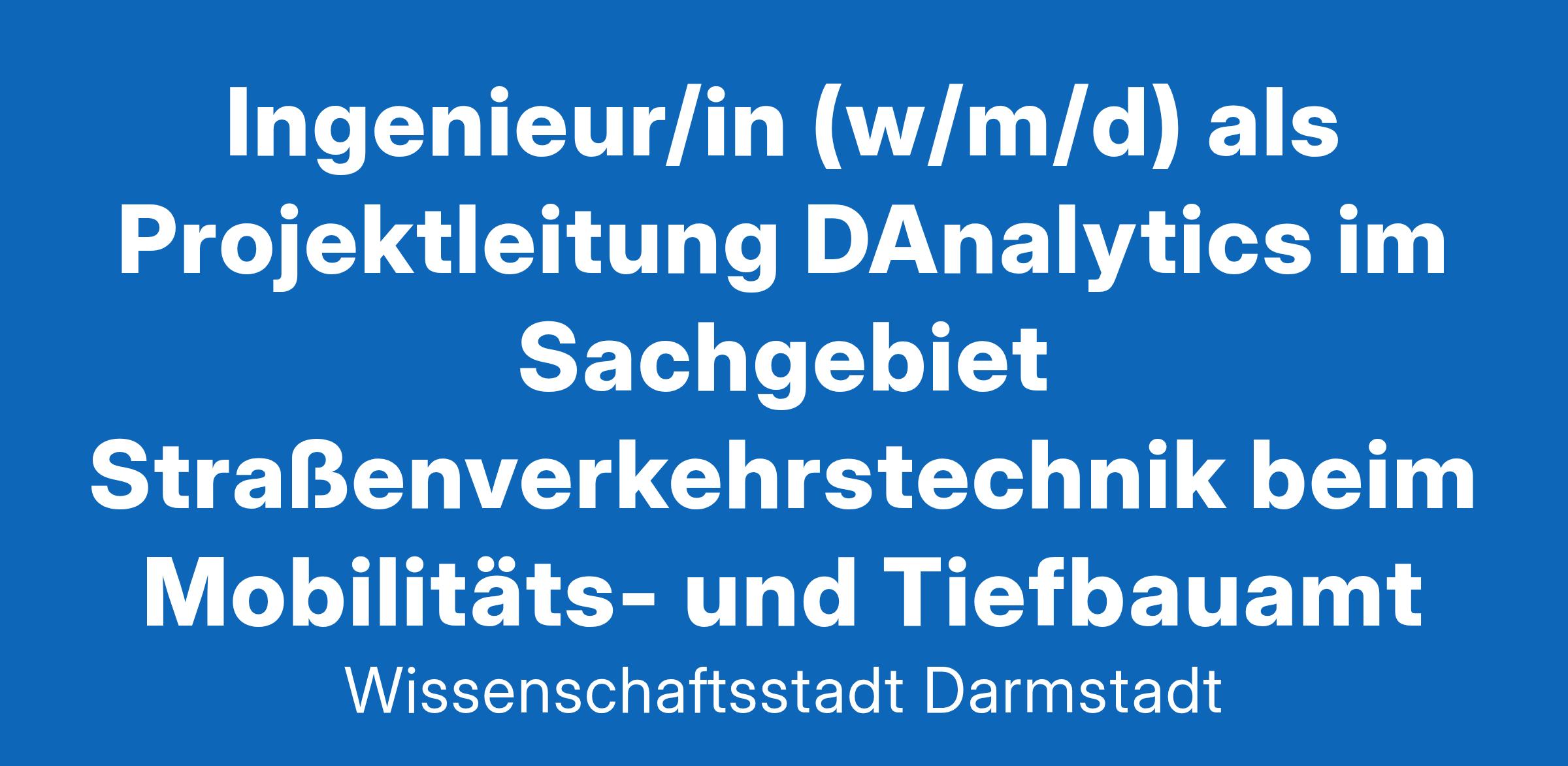 Ingenieur/in (w/m/d) als Projektleitung DAnalytics im Sachgebiet Straßenverkehrstechnik beim Mobilitäts- und Tiefbauamt