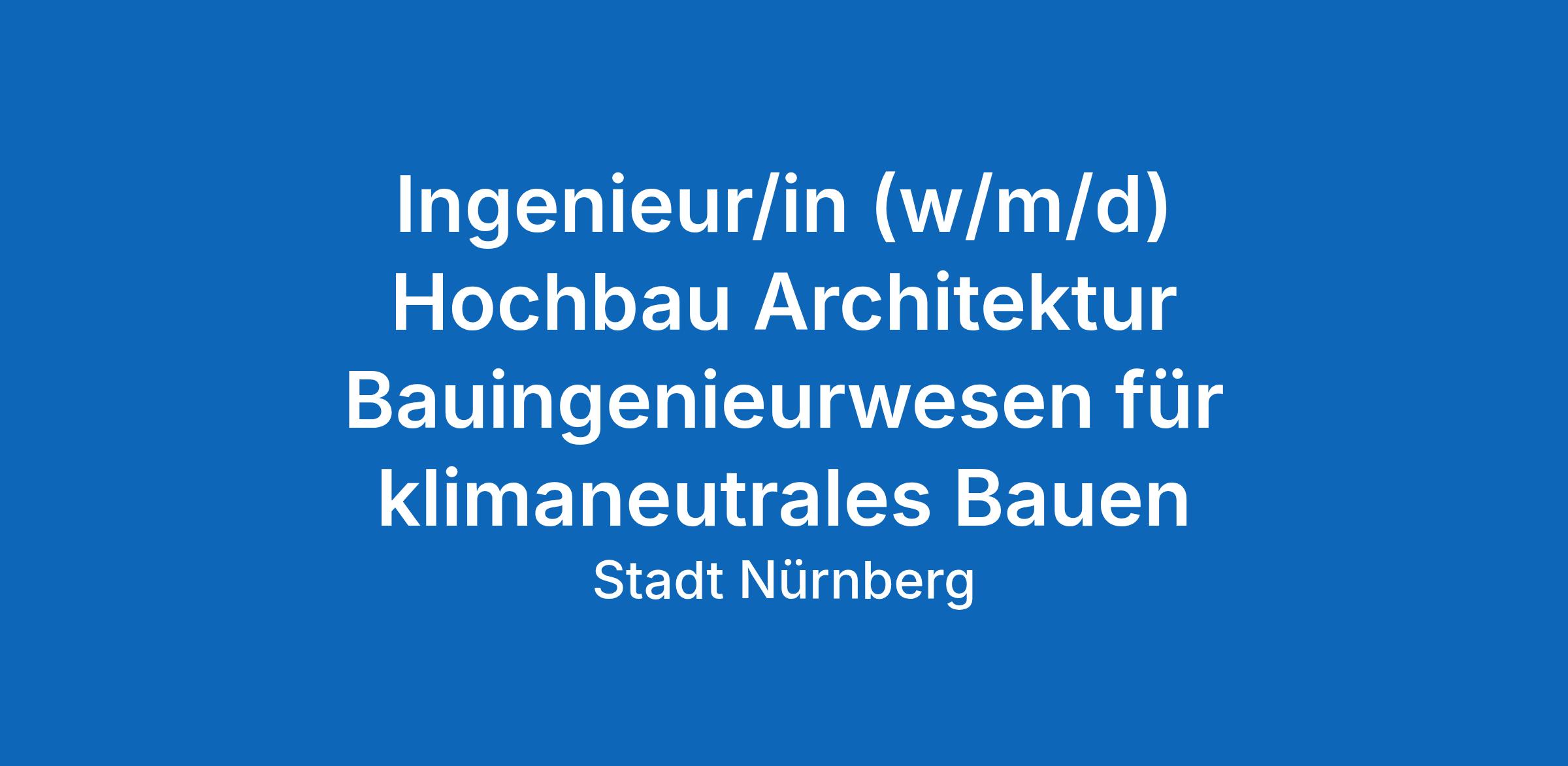 Ingenieur/in (w/m/d) Hochbau Architektur Bauingenieurwesen für klimaneutrales Bauen