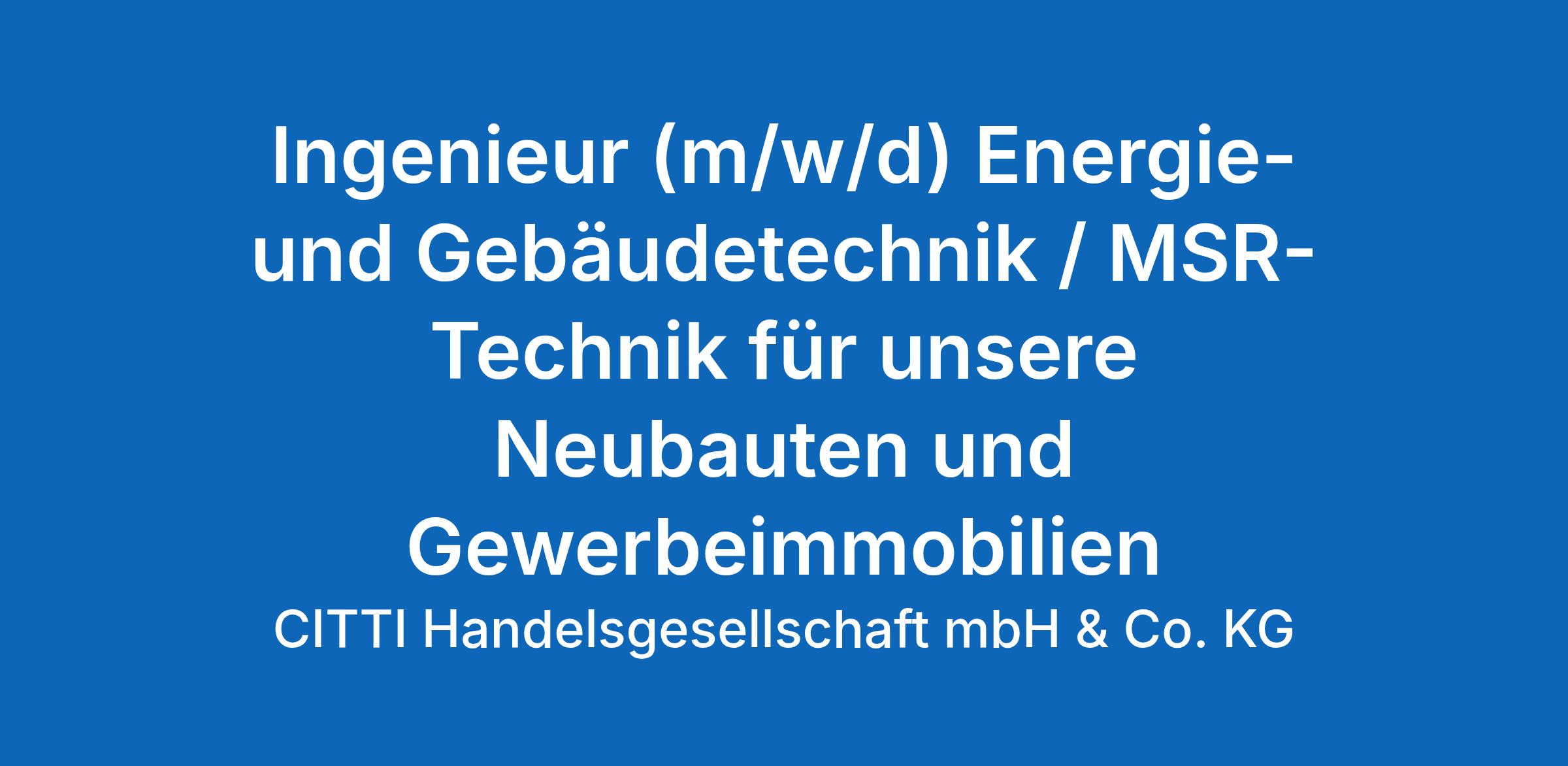 Die CITTI Unternehmensgruppe ist ein expansives national und international tätiges Familienunternehmen mit Sitz in Kiel. Mit unserer Tochtergesellschaft CHEFS CULINAR beliefern wir als Branchenführer im Zustellgroßhandel Kunden in ganz Deutschland und dem benachbarten europäischen Ausland. Neben sechs Einkaufscentern in Norddeutschland, davon in Flensburg, Kiel und Lübeck auch mit eigenen CITTI-Lebensmittelfachmärkten, gehört auch der weltweit tätige Schiffsausrüster HMS Hanseatic Marine Services mit Standorten in Kiel und Hamburg zur CITTI Unternehmensgruppe. Über 10.000 Mitarbeitenden tragen täglich in allen Geschäftsbereichen entscheidend zu unserem Erfolg bei. Zur Verstärkung unseres Teams in der Bauabteilung suchen wir in Vollzeit (38,5 Std./ Woche) zum nächstmöglichen Termin in unserer Hauptverwaltung in Kiel einen Ingenieur (m/w/d) Energie- und Gebäudetechnik / MSR-Technik für unsere Neubauten und Gewerbeimmobilien