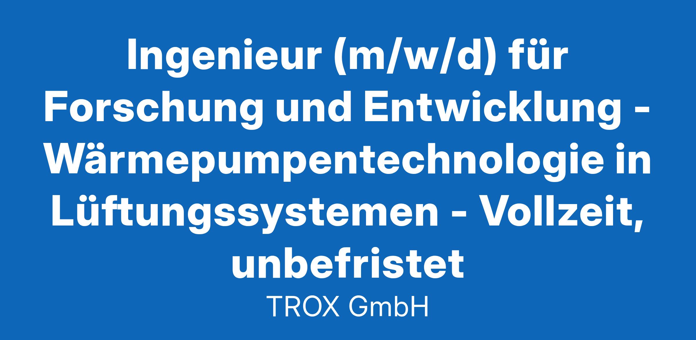 Ingenieur (m/w/d) für Forschung und Entwicklung - Wärmepumpentechnologie in Lüftungssystemen - Vollzeit, unbefristet