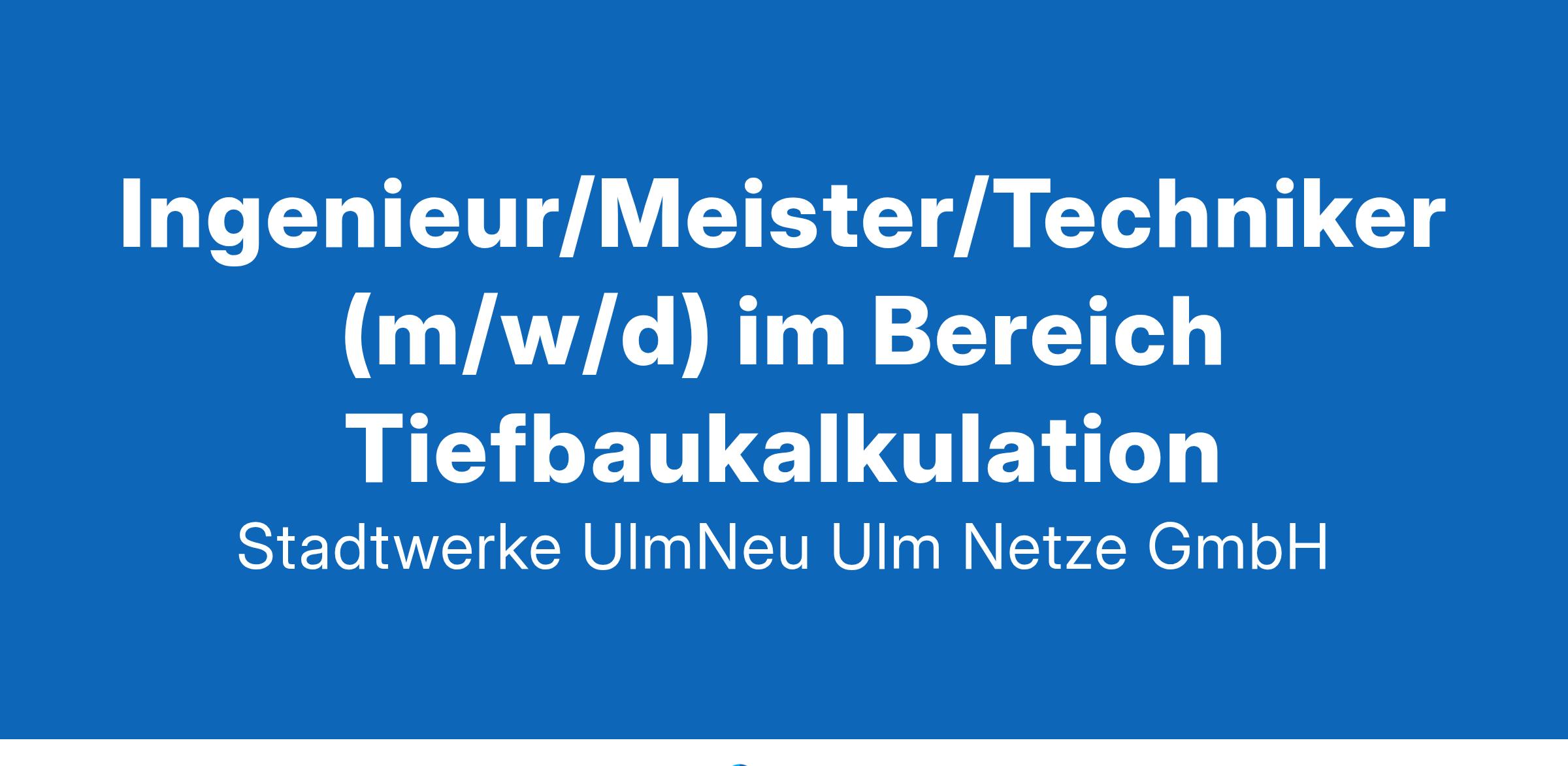 Die Stadtwerke Ulm/Neu-Ulm bringen frischen Wind in die Energiewende. Und noch viel mehr, denn wir treiben den Ausbau aller erneuerbaren Energien voran. Vielleicht bald mit dir - du wirst merken, das ist einer der #jobswieich.Ingenieur/Meister/Techniker (m/w/d) im Bereich