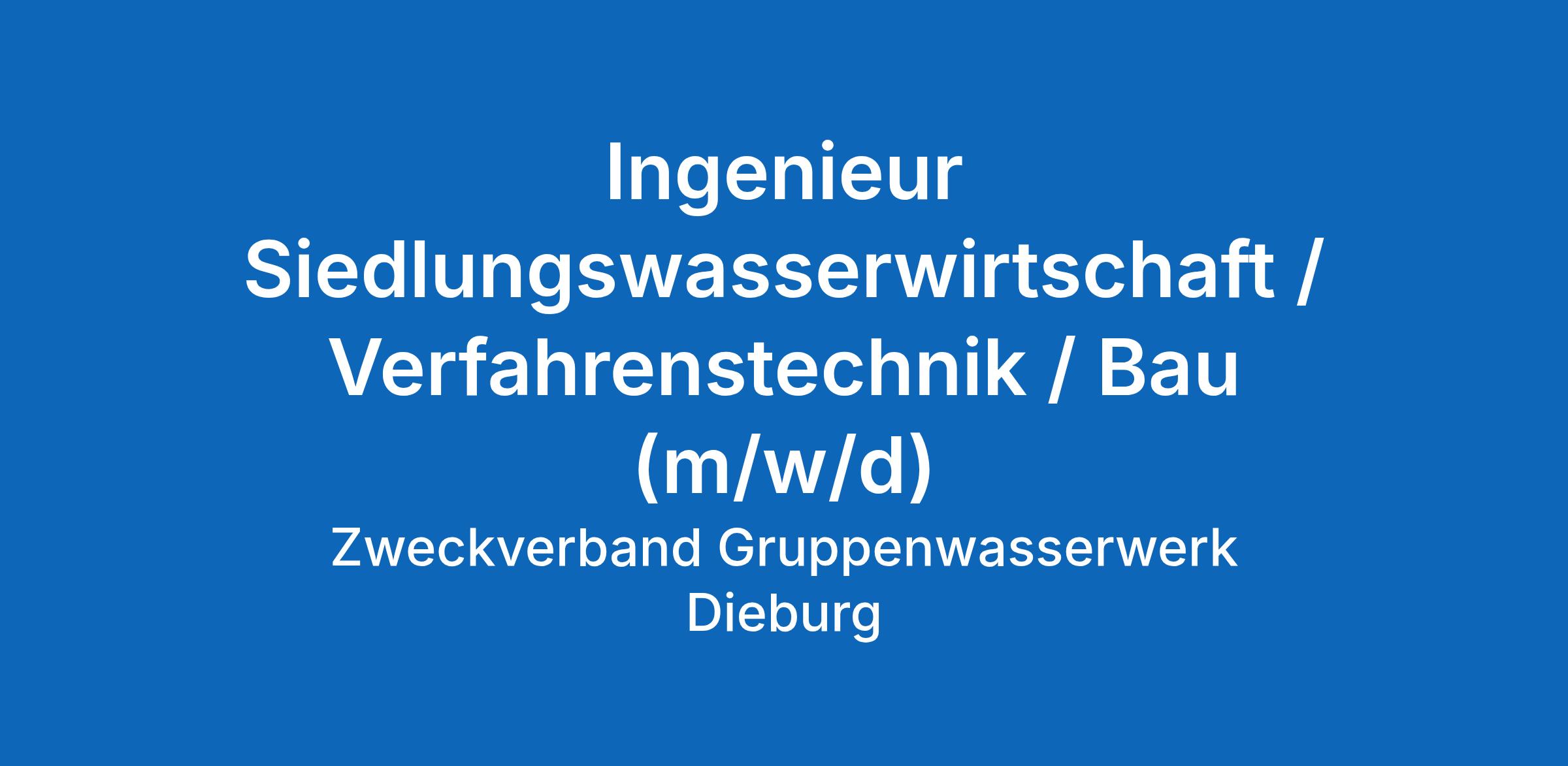 Ingenieur Siedlungswasserwirtschaft, Verfahrenstechnik oder Bau (m/w/d)