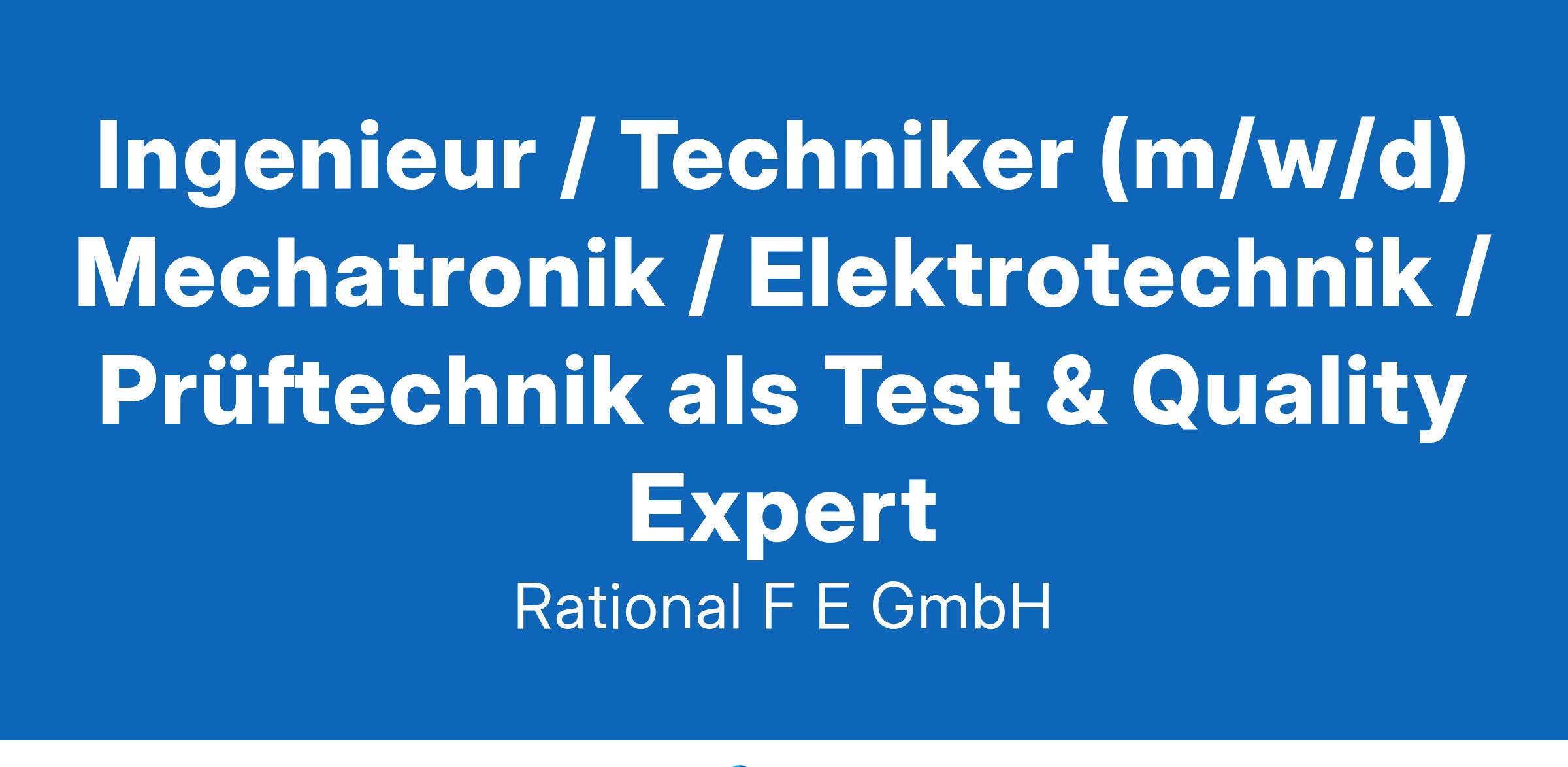 Ingenieur / Techniker (m/w/d) Mechatronik / Elektrotechnik / Prüftechnik als Test & Quality ExpertReferenznummer: 15129Die RATIONAL-Gruppe ist weltweiter Markt- und Technologieführer, wenn es um intelligentes Küchenequipment und digitale Produkte geht. Jetzt brauchen die rund 2.500 Mitarbeitenden auf der ganzen Welt Unterstützung. Jemanden mit Biss, mit Verstand und mit Engagement.