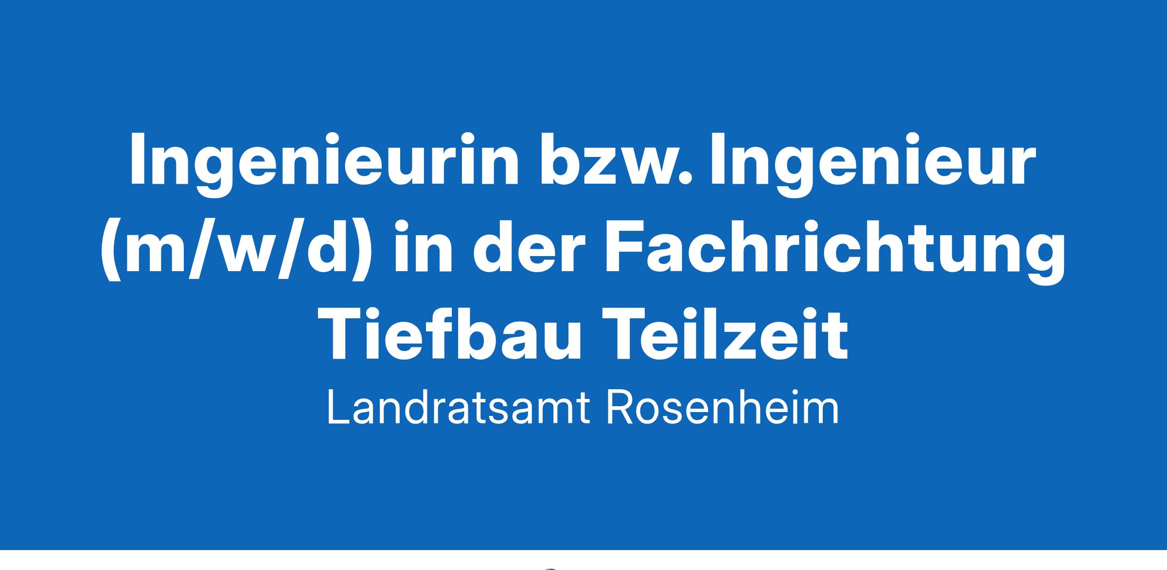 Der Landkreis Rosenheim sucht für das Sachgebiet 42 - Tiefbau zum 01.06.2025 eine Ingenieurin bzw. einen Ingenieur (m/w/d) in der Fachrichtung Tiefbau für die Deponien des Landkreises Rosenheim