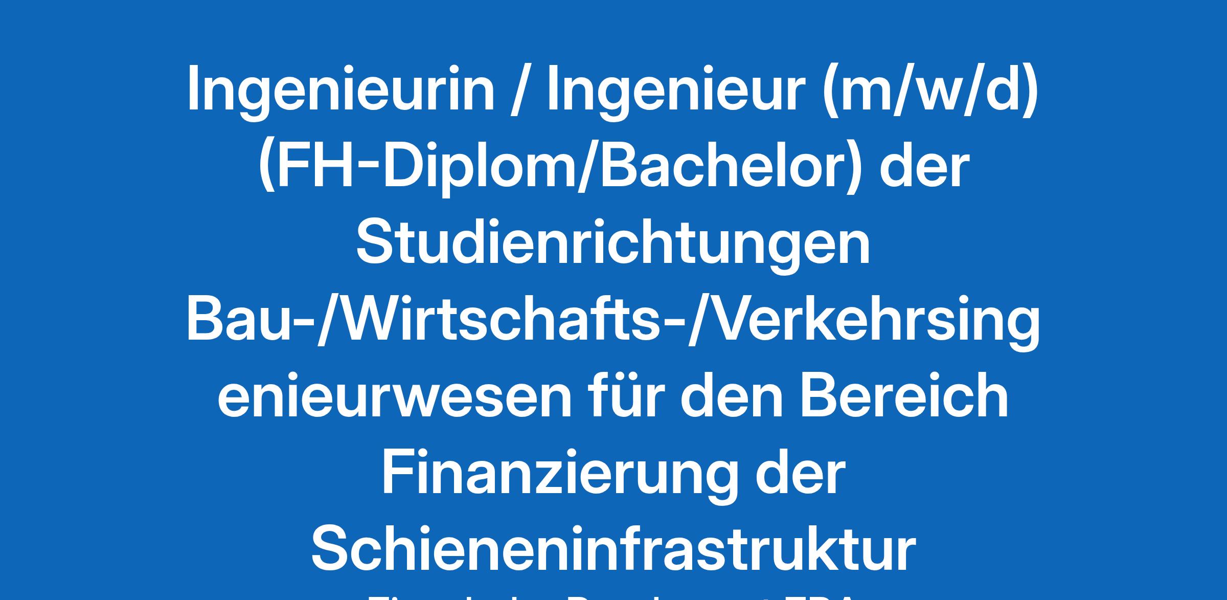 Ingenieurin / Ingenieur (m/w/d) (FH-Diplom/Bachelor) der Studienrichtungen Bau-/Wirtschafts-/Verkehrsingenieurwesen für den Bereich Finanzierung der Schieneninfrastruktur