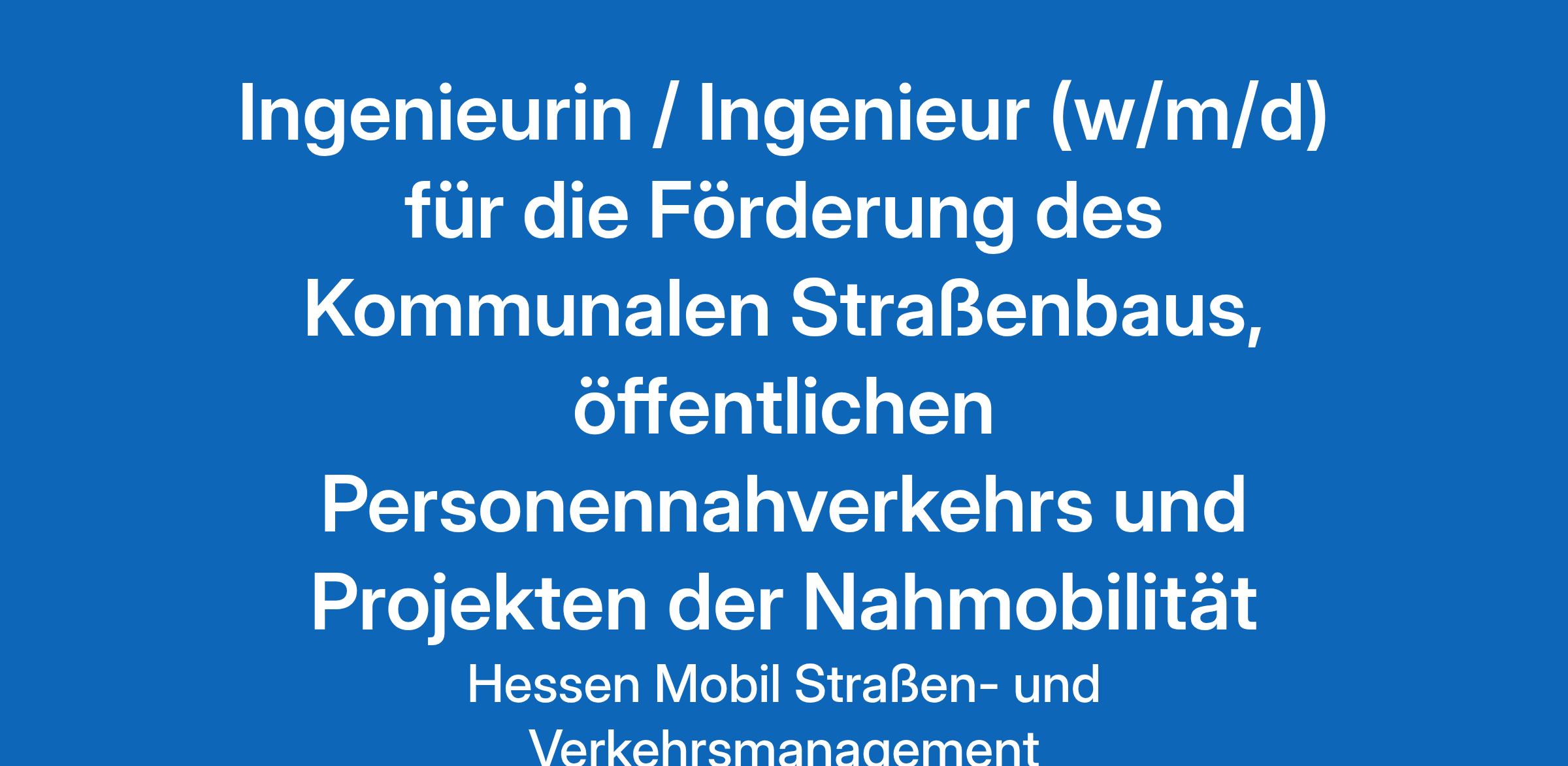 Hessen Mobil verbindet Menschen und Orte in Hessen. Als Straßenbaubehörde verantworten wir die komplette Wertschöpfungskette des Straßenbaus und kümmern uns um Mobilitätsstrategien, Planung, Bau, Straßenbetrieb und das Verkehrsmanagement.