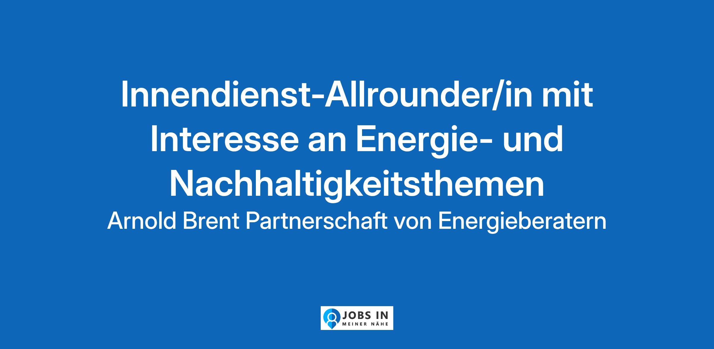 Wir suchen Innendienst-Allrounder/in mit Interesse an Energie- und Nachhaltigkeitsthemen Wir bieten Wertschätzung, Flexibilität und Entwicklungsmöglichkeiten Die Arnold & Brent Partnerschaft von Energieberatern ist ein spezialisiertes Beratungsunternehmen für Energiemanagement im Industrie- und G... Energie;Überzeugungskraft;Social Media;Ansprechpartner;Direktmarketing;Lernbereitschaft;Deutsch;Kundenorientiert;Vertrieb;ISO-Norm;Auftragsbestätigung;Interne Schulungen;Kaltanrufe;Maschinenanlagen;Kundenbedürfnis;Energie;Verhandlungsführung;Abrechnung;Flexibilität;Vertrieb;Versand Original Stellenanzeige auf StepStone.de – Jetzt Jobagent bei StepStone einrichten und Traumjob finden! https://bit.ly/2KOagYD Mehr Informationen zu Arbeitgebern, Gehaltsdaten und Karrieretipps finden Sie auf StepStone.de