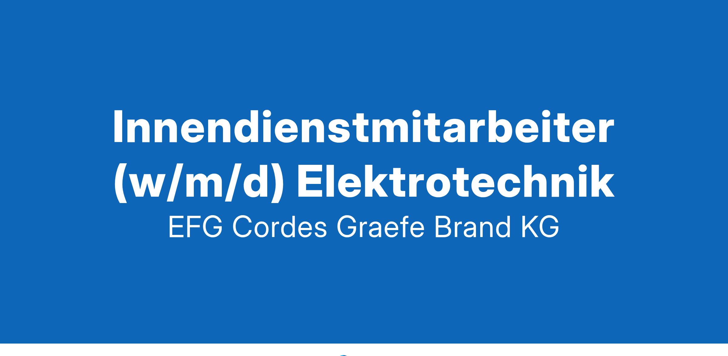 EFG CORDES & GRAEFE BRAND Wir sind die Alternative, die als Elektrogroßhandel echte Perspektiven schafft. Sorgen Sie als wichtiger Bestandteil unseres Vertriebsteams mit lokalen und digitalen Lösungen sowie unserem Sortiment aus knapp 1 Million Artikel für nachhaltigen Erfolg unserer Elektrokunden. EFG CORDES & GRAEFE BRAND KG INNENDIENSTMITARBEITER (w/m/d) ELEKTROTECHNIK