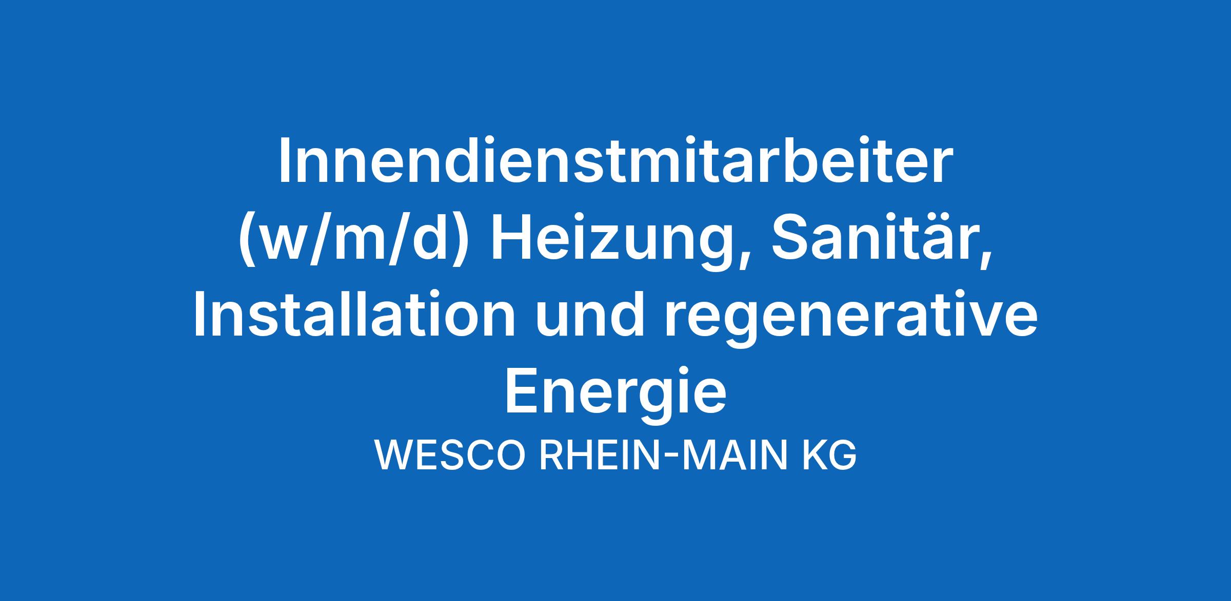Innendienstmitarbeiter (w/m/d) Heizung, Sanitär, Installation und regenerative Energie