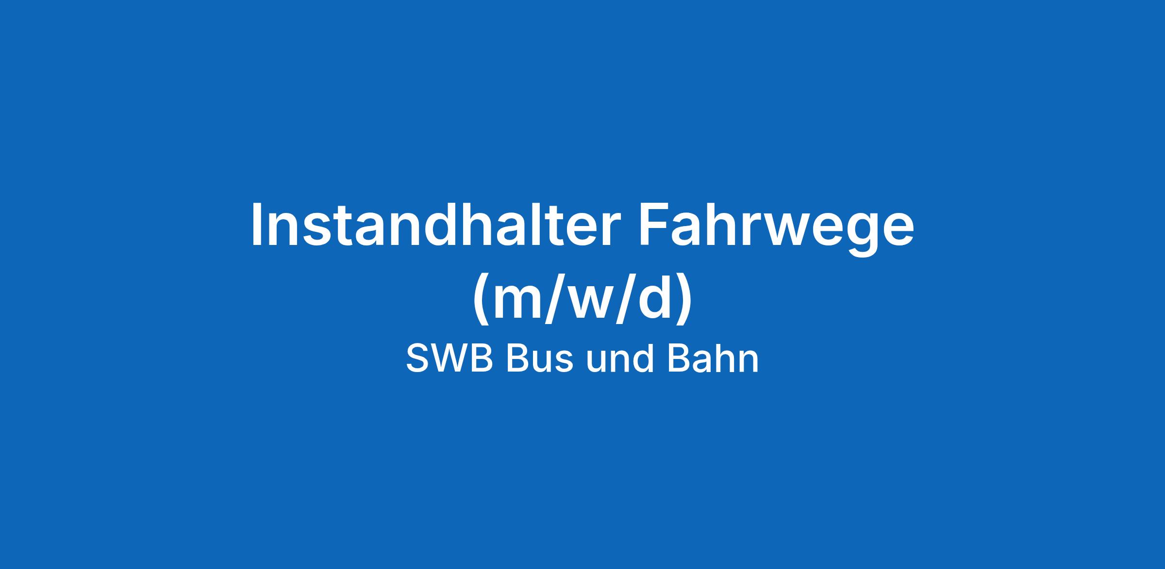 Für den Fachbereich Fahrwege/Bahnbau der SWB Bus und Bahn suchen wir zum nächstmöglichen Zeitpunkt mehrere Instandhalter (m/w/d) für die Instandhaltung der Gleisanlagen in unserem Verkehrsgebiet.