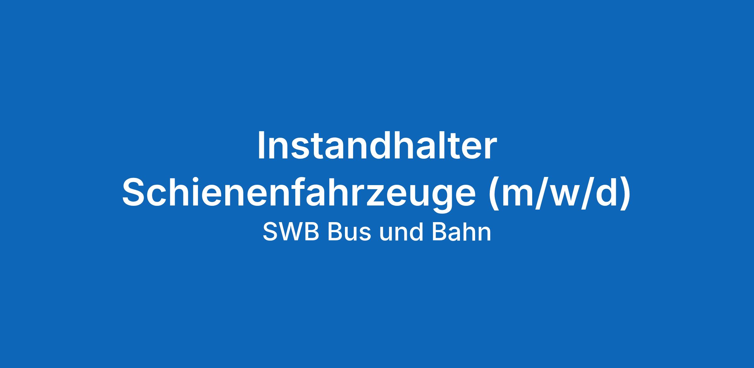 Für den Bereich Schienenfahrzeuge der SWB Bus und Bahn suchen wir zum nächstmöglichen Zeitpunkt einen Instandhalter Schienenfahrzeuge (m/w/d) für den Wechselschichtdienst.