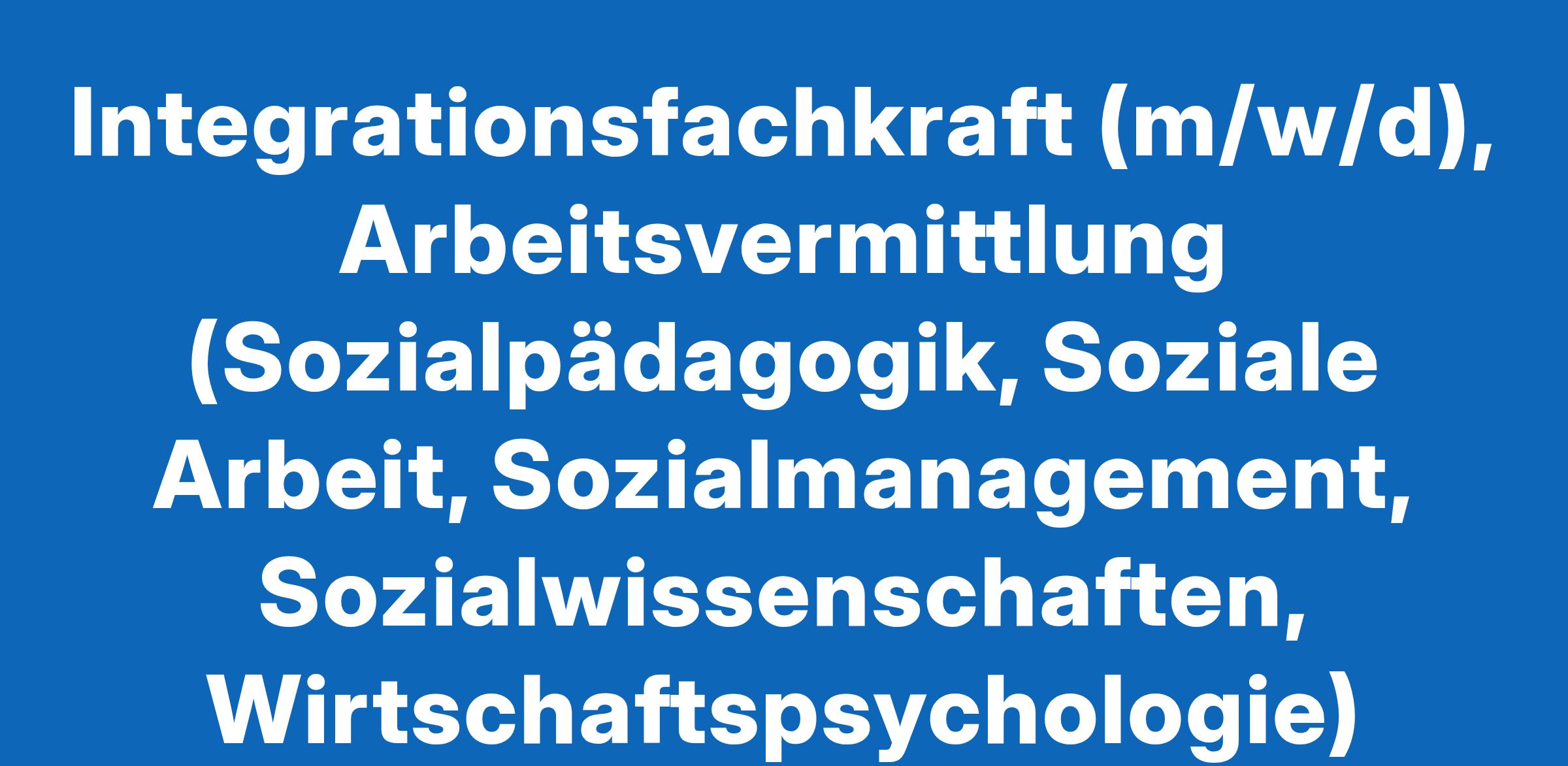 Integrationsfachkraft (m/w/d), Arbeitsvermittlung (Sozialpädagogik, Soziale Arbeit, Sozialmanagement, Sozialwissenschaften, Wirtschaftspsychologie)