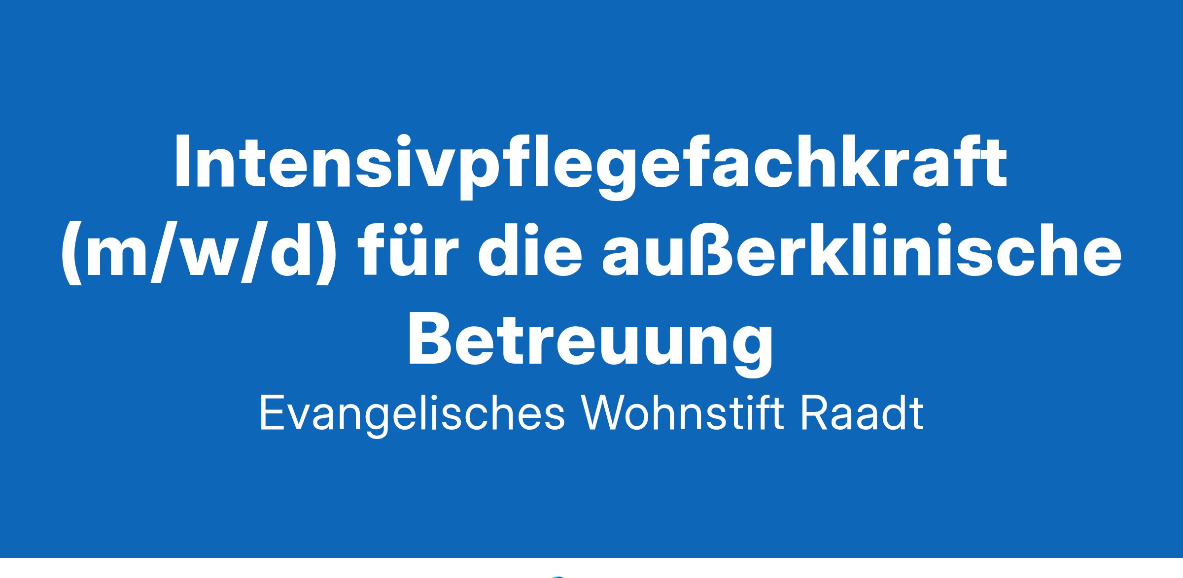Karriere im Evangelischen Wohnstift RaadtDas Evangelische Wohnstift Raadt ist eine moderne Einrichtung der stationären Altenhilfe. Mehr als 100 Bewohnerinnen und Bewohner mit verschiedenen Pflegegraden wohnen in drei Wohnbereichen. Seit dem Jahr 2020 befindet sich die Außerklinische Intensivpflege in einem separaten Gebäude, ein Schwerpunktversorgungsbereich für Menschen im Wachkoma und/oder mit (Heim-)Beatmung. Unsere Einrichtung zeichnet sich durch seine Verwurzelung im lokalen Umfeld, die Vielfalt der Bewohnerinnen und Bewohner und unsere gewachsene Teamkultur aus. Wir sind fest im nachbarschaftlichen Umfeld verankert. Die Angehörigen unserer Bewohnerinnen und Bewohner sind bei uns stets gern gesehen und werden aktiv in unseren Alltag eingebunden.Zum nächstmöglichen Zeitpunkt suchen wir zur Verstärkung unseres Teams in der außerklinischen Intensivpflege einePflegefachkraft (m/w/d)in Voll- oder Teilzeit.Wir begleiten unsere Bewohnerinnen und Bewohner fürsorglich und mit hoher pflegerischer Kompetenz, gehen mit Einfühlungsvermögen auf persönliche Wünsche und Bedürfnisse unserer Bewohnerinnen und Bewohner ein und schaffen gleichzeitig vielfältige Möglichkeiten für Unterhaltung und familiäre Gemeinsamkeit. Die beruflichen Leistungen unserer Kolleginnen und Kollegen sind uns ebenso wichtig wie ihre persönlichen Lebenslagen und individuellen Perspektiven. Unsere regelmäßigen Fortbildungs- und Qualifizierungsangebote tragen zur eigenen Weiterentwicklung bei. Wo es erforderlich und möglich ist, passen wir Arbeitsmodelle an individuelle Bedürfnisse an und bieten Unterstützung, damit berufliche und private Belange harmonisch zusammengeführt werden können. Jedes Mitglied unseres Teams kann sich auf eine Atmosphäre des Respekts verlassen.Dein AufgabengebietGrund- und Behandlungspflege inkl. Versorgung und Übernahme der BezugspflegeBetreuung von Wachkomapatienten unter Nutzung von unterschiedlichen medizinisch-technischen Geräten, wie z.B. BGA, Antidekubitussystemen, Ernährungspumpen, Absauggeräten, OxatorenSteuerung und Überwachung von Pflege- und BetreuungsprozessenZielfestlegung und Planung der Maßnahmen im Pflege- und Betreuungsprozess, einschließlich der Kontrolle und Auswertung der Pflege- und BetreuungsqualitätInformation und Beratung von Bewohnern und AngehörigenDurchführung der elektronischen Pflegeplanung und -dokumentationDas bringst du mitErfolgreich abgeschlossene Ausbildung in der Gesundheits- und Krankenpflege oder AltenpflegeAbgeschlossene Weiterbildung im Schwerpunktbereich "Wachkoma" oder die Bereitschaft diese zu absolvierenErfahrung in der außerklinischen Intensivpflege (z.B. Wachkoma oder Heimbeatmung) wünschenswertFreude im Umgang mit pflegebedürftigen MenschenDie Fähigkeit zur kooperativen Mitarbeit in einem kreativen Team bei klar strukturierten RahmenbedingungenGute kommunikative und soziale FähigkeitenBereitschaft zum SchichtdienstDas erwartet dich bei unsBewohnerinnen und Bewohner, die dich willkommen heißenDynamische Teammitglieder, die füreinander einspringenOffenheit für deine Ideen und AnregungenAttraktive, tarifgebundene Vergütung nach BAT-KFZusatzvergütungen wie Weihnachtsgeld, Wochenend- und FeiertagszuschlägeBetriebliche Altersvorsorge durch die kirchliche Zusatzversorgungskasse (KZVK)Aktive Gesundheitsförderung (Sport & Entspannung, Gesundheitscheck u. v. m.)Arbeitgeberfinanzierte Fortbildungen und Unterstützung in deiner beruflichen und persönlichen Weiterentwicklung, auch in unserem hauseigenen Ategris BildungsinstitutViele Mitarbeitervorteile und Rabatte (Corporate Benefits, Kultur & Musik u. v. m.)Arbeitgeberunterstütztes Fahrrad-LeasingHaben wir dein Interesse geweckt?Dann nichts wie los – klicke direkt auf den "Jetzt Bewerben"-Button und überzeuge uns von deinen Fähigkeiten!